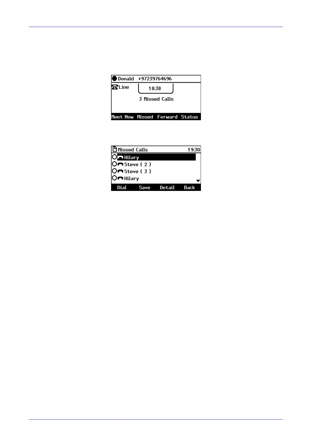 1. Press the Missed softkey; the Missed Calls screen is displayed: