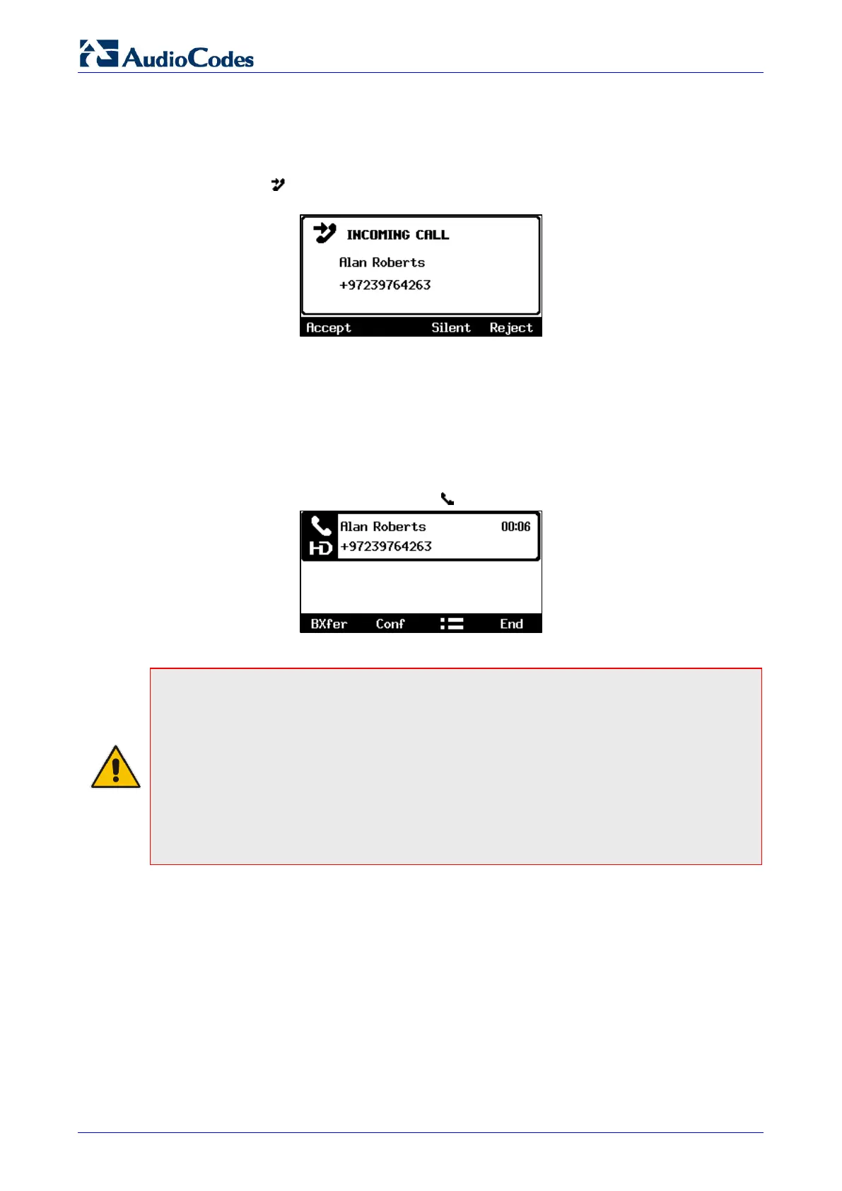 the LCD and the adjacent incoming call icons flash. If a user is in a call and a third party