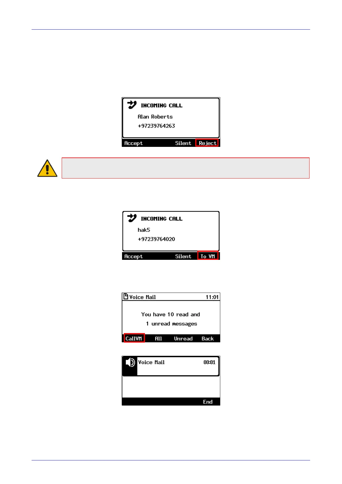 When the phone rings to alert to an incoming call, press the To VM softkey that is displayed.