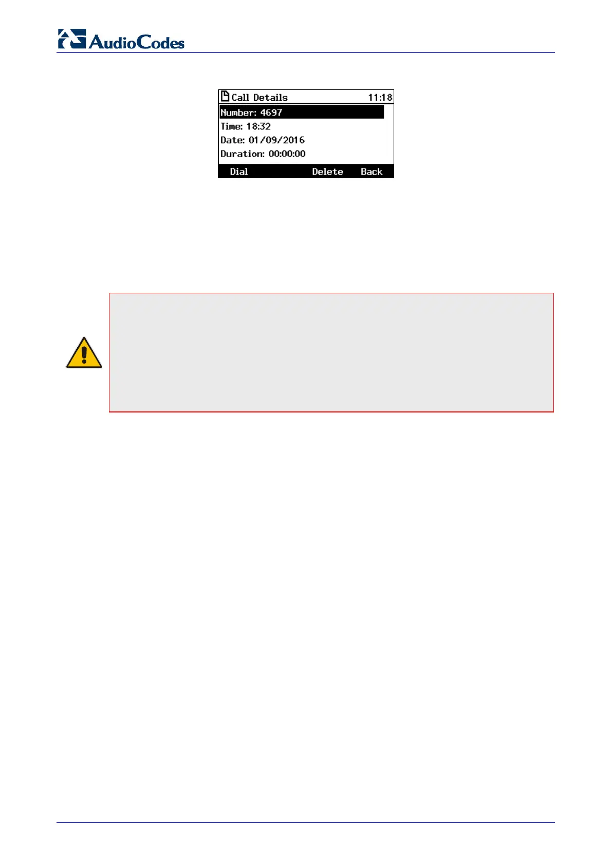 • Detail = accesses the Call Details screen, which displays details of the call entry: