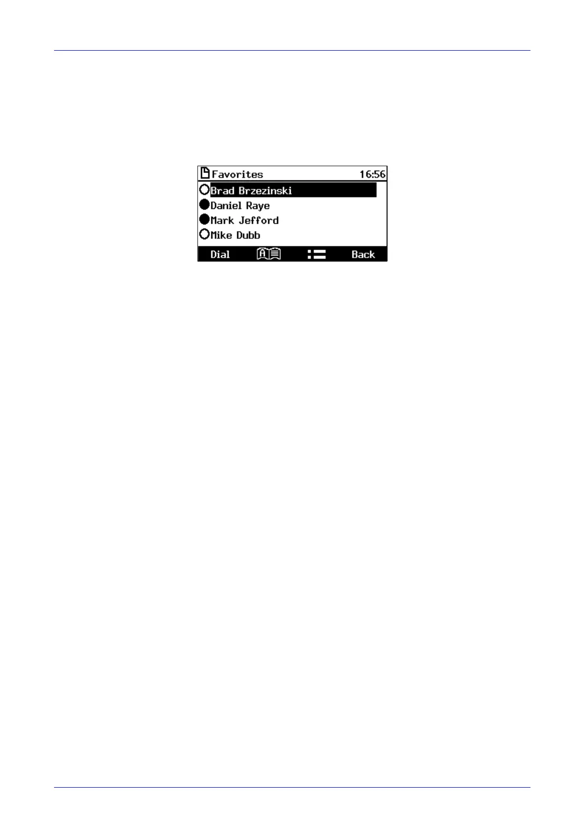 2. Navigate to a contact to call and then press the Dial softkey or the OK hard key.