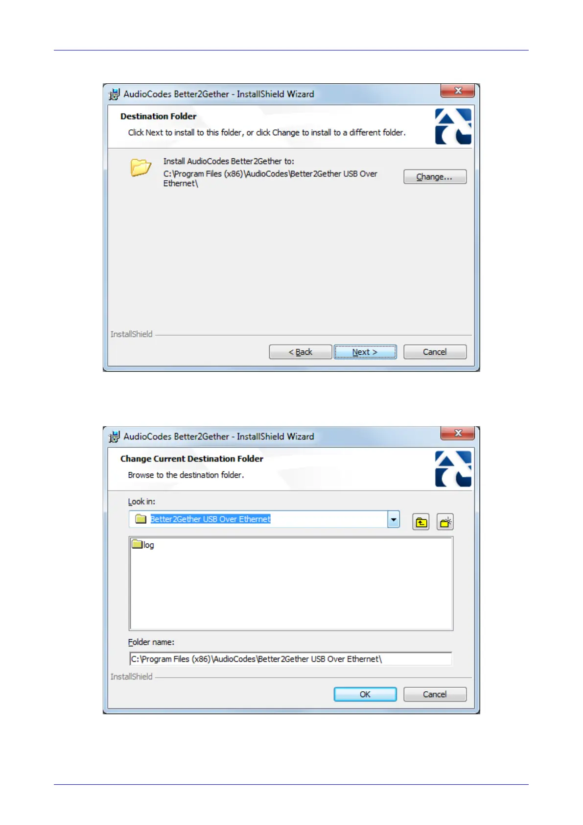 5. To change the default Destination Folder, click Change and proceed to step 6.