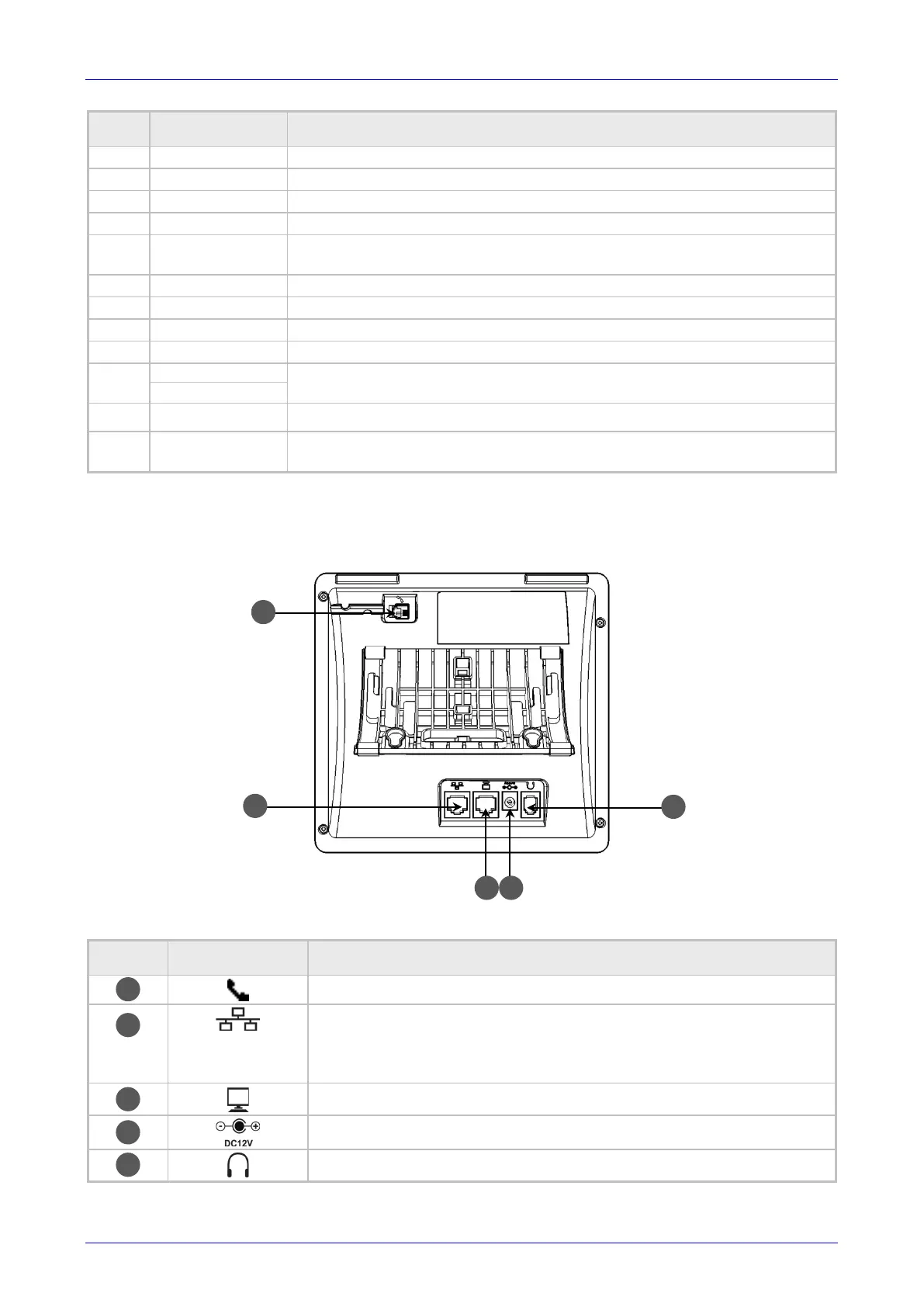The rear view of the phone is shown in the figure below and described in the table below.