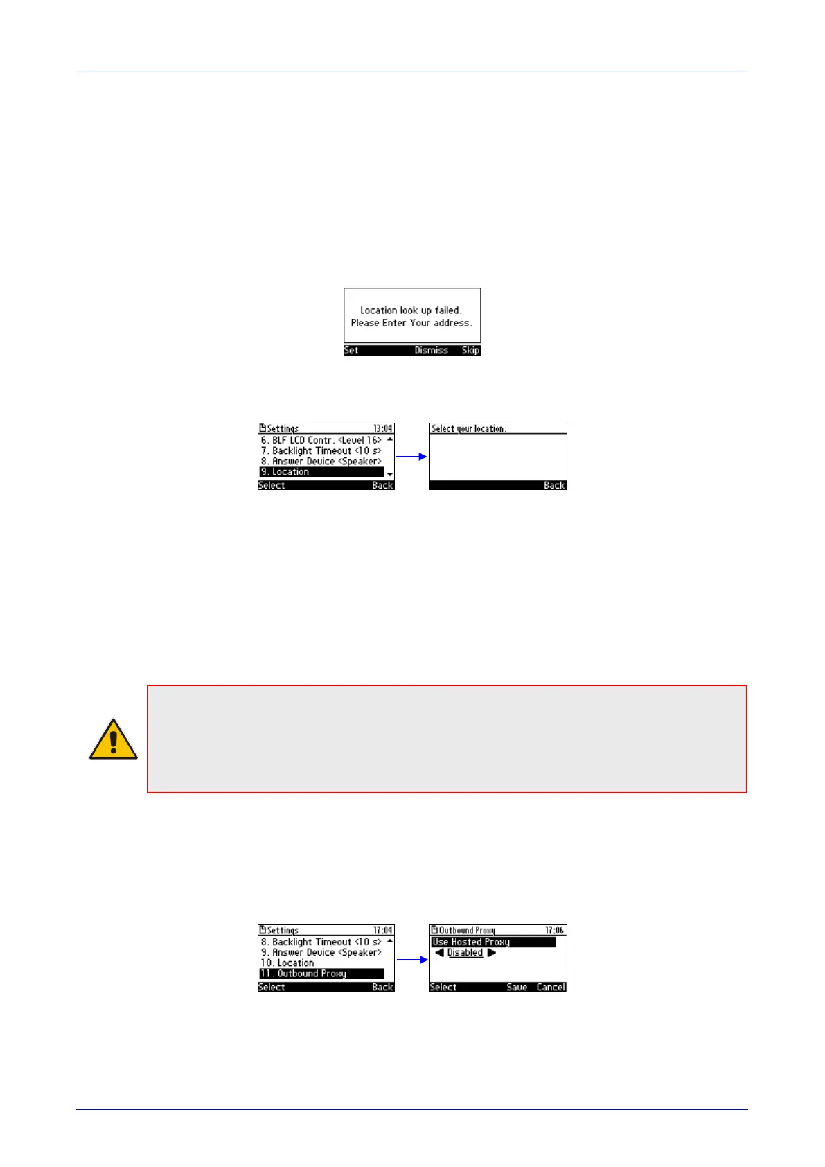 1. In the phone's LCD, access the Outbound Proxy screen (MENU key > Settings >