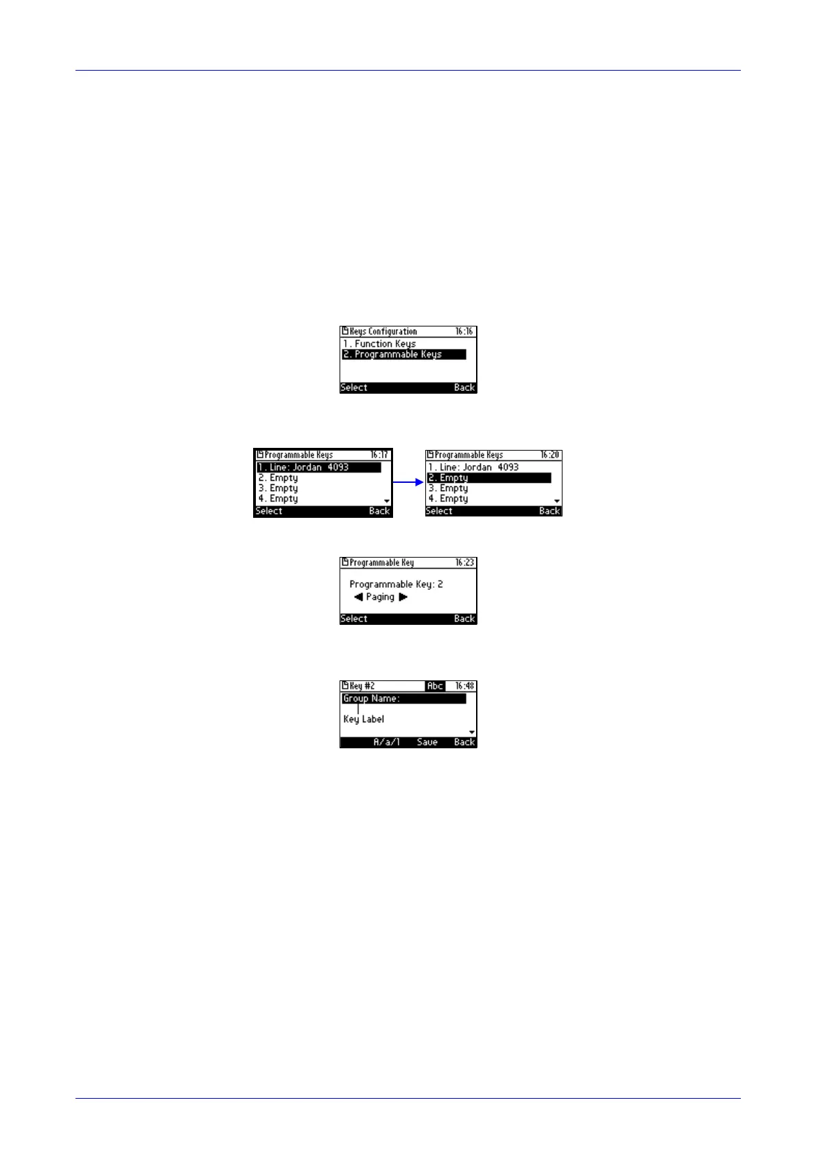 1. Access the Programmable Keys screen (MENU key > Keys Configuration >