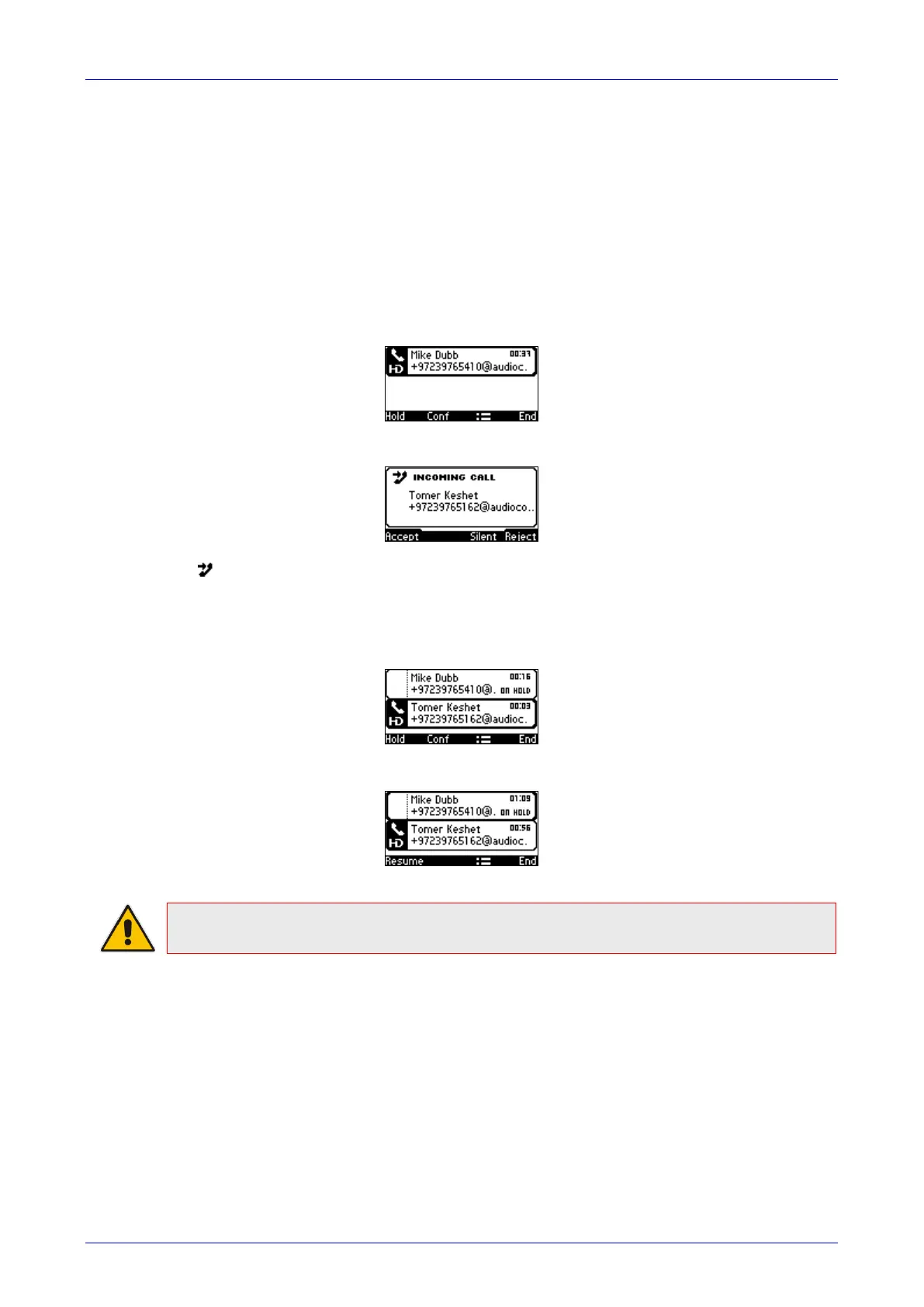 1. Press the Accept softkey; the waiting call from Tomer Keshet is answered; the previous call