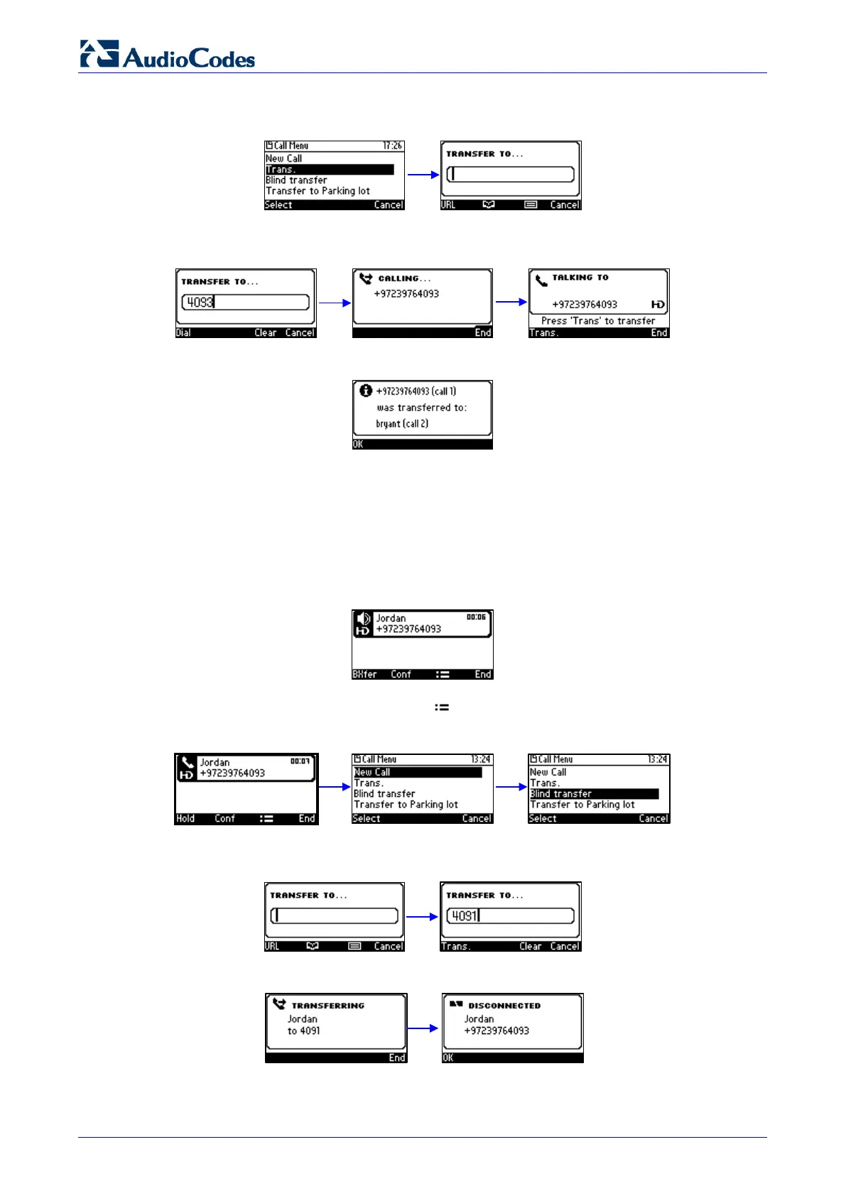 4. Consult with Jordan and then press the Trans. Softkey; Jordan is transferred to Bryant.