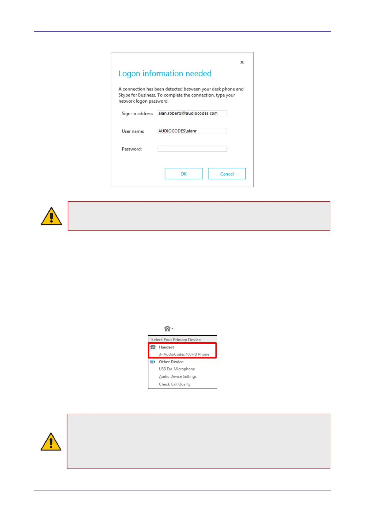 2. Make sure Handset AudioCodes 400HD Phone is selected.