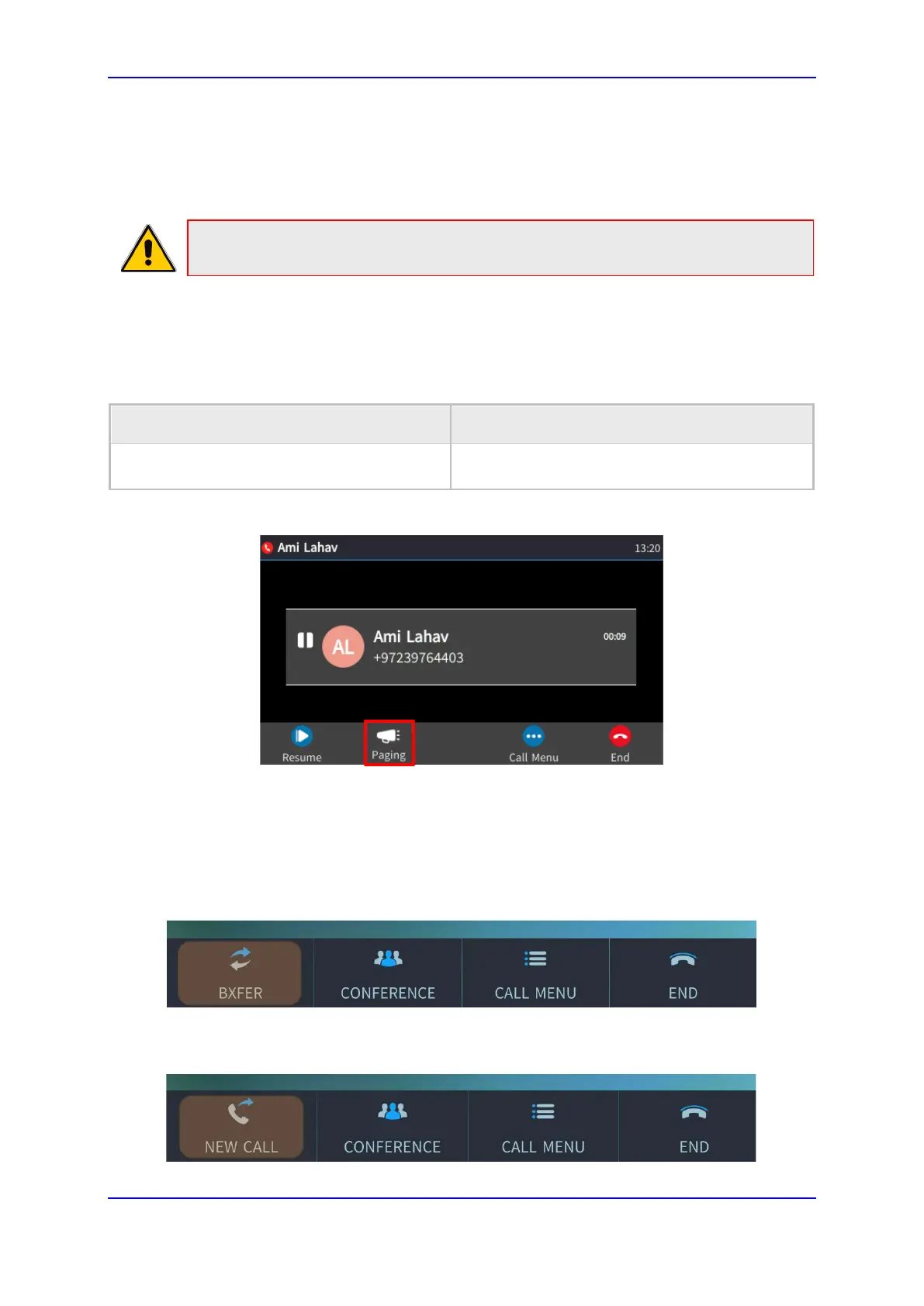 Users will view a ‘Paging’ softkey in the phone’s Hold screen (i.e., in the screen displayed