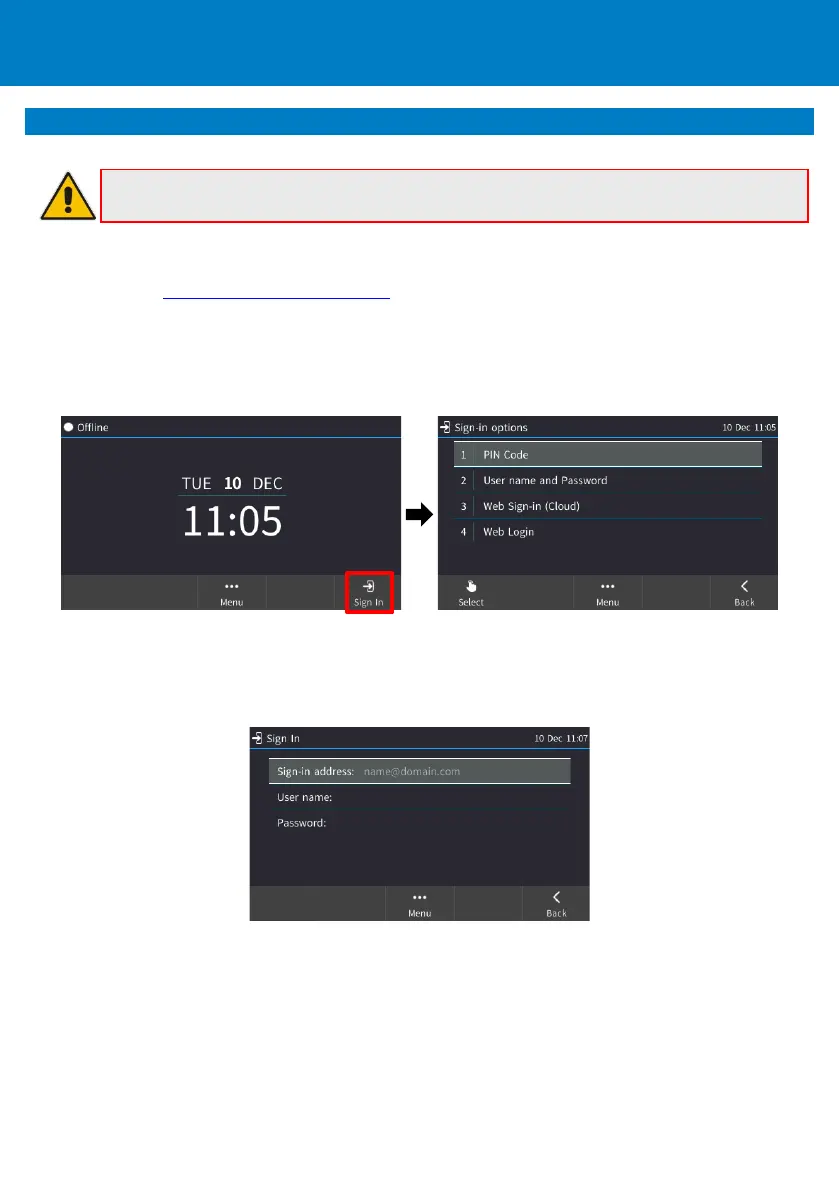 2. Enter the ‘Sign-in address’ (SIP address), (e.g., john.doe@enterprise.com) and ‘User name’, (e.g.,