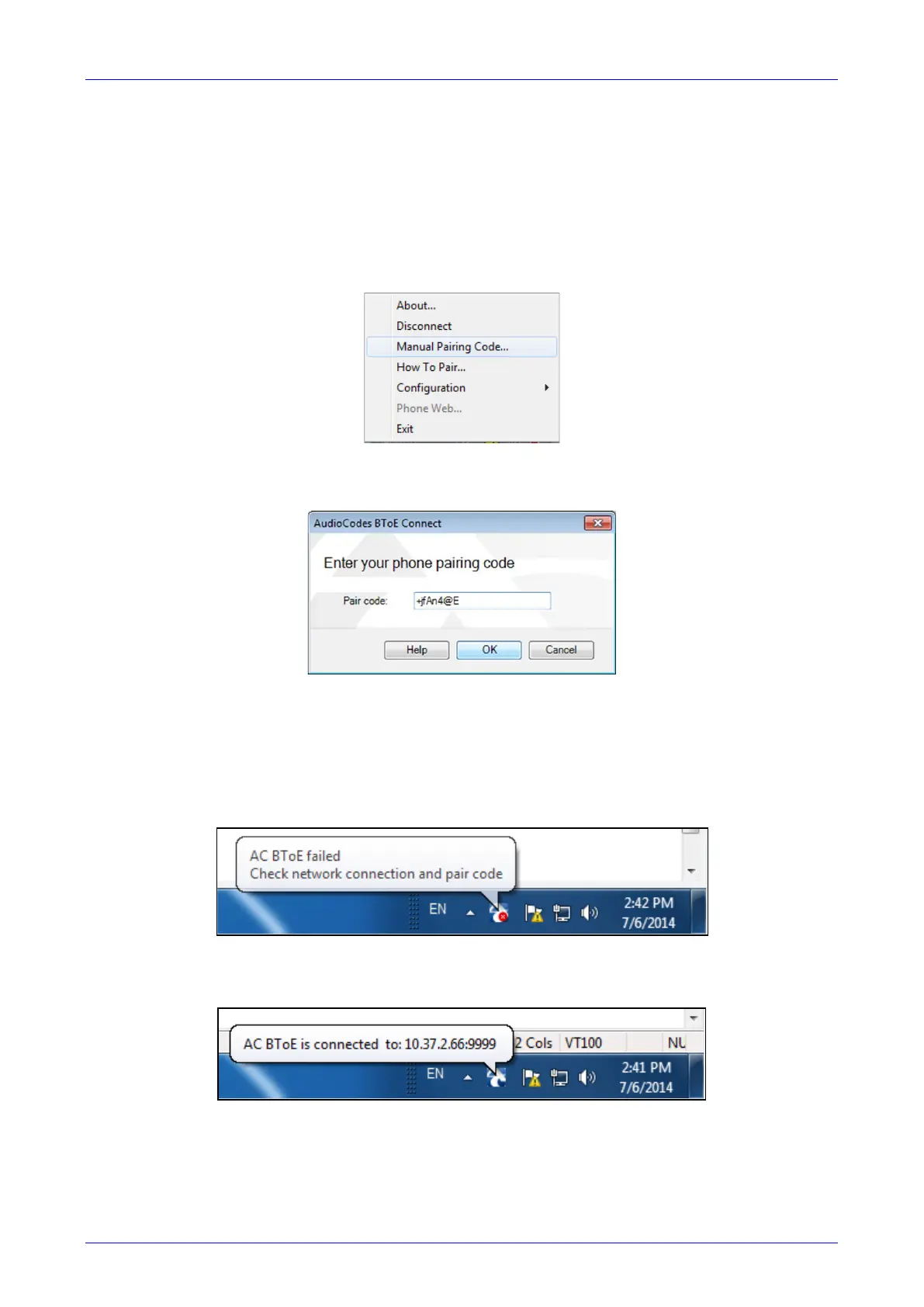 8.1.6.2 Manually Connecting the Phone with the BToE PC Application