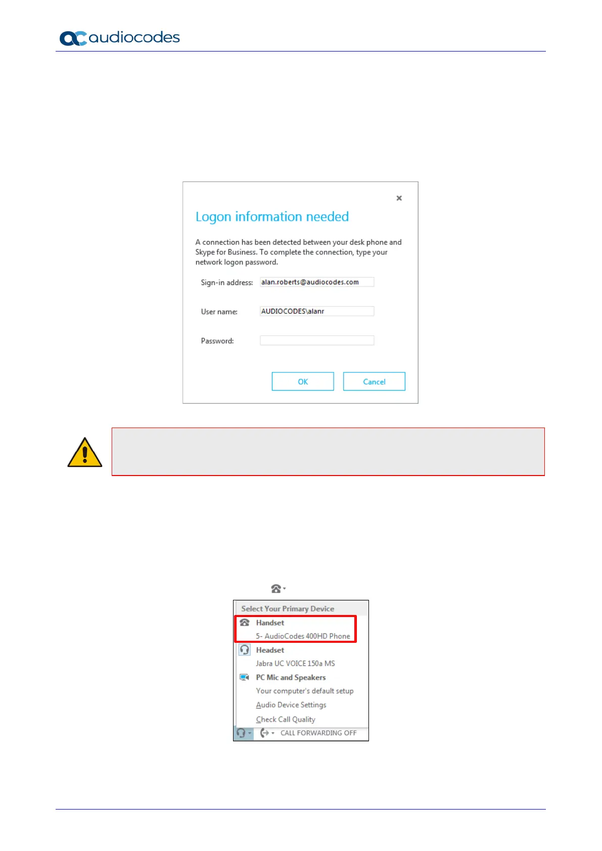 2. Make sure Handset is AudioCodes 400HD Phone.