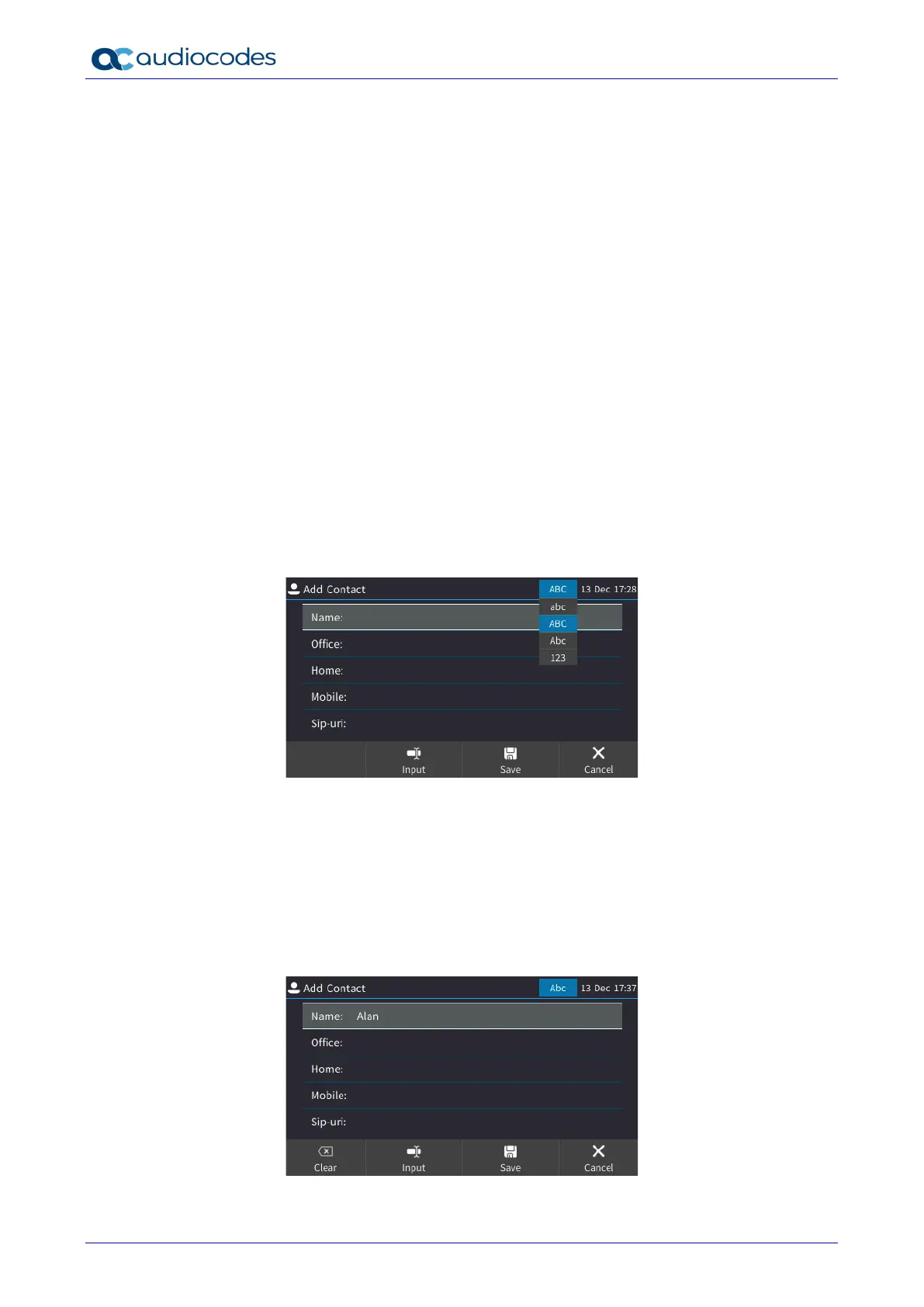 3. [For example] Select Abc mode and then on the keypad, press the 2 key; A is entered.