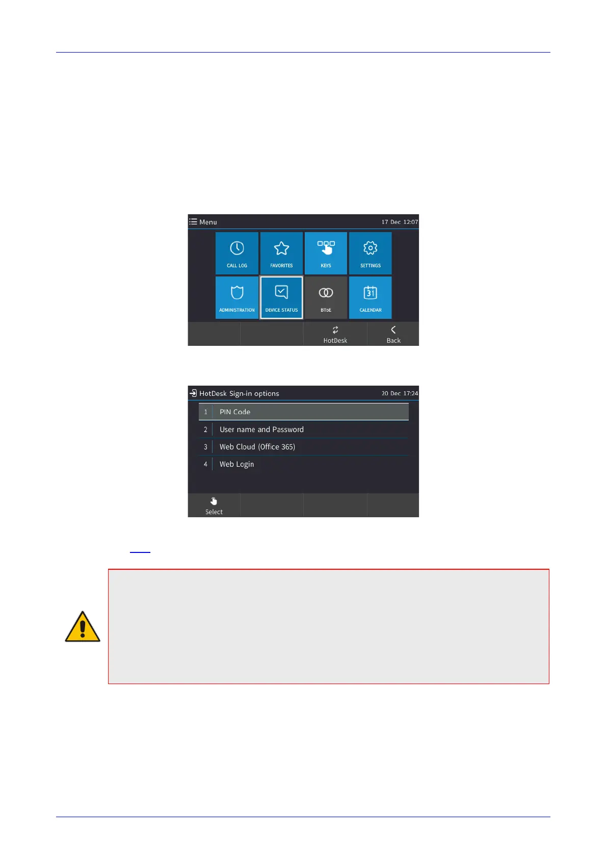 2. Click the HotDesk softkey; the 'HotDesk Sign-in options' screen opens – identical to the