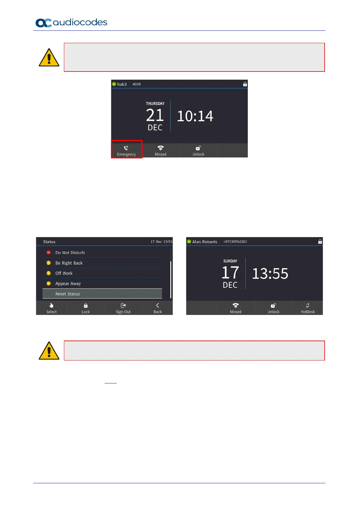 available and dialable in the event the phone locks via a new Emergency softkey that is