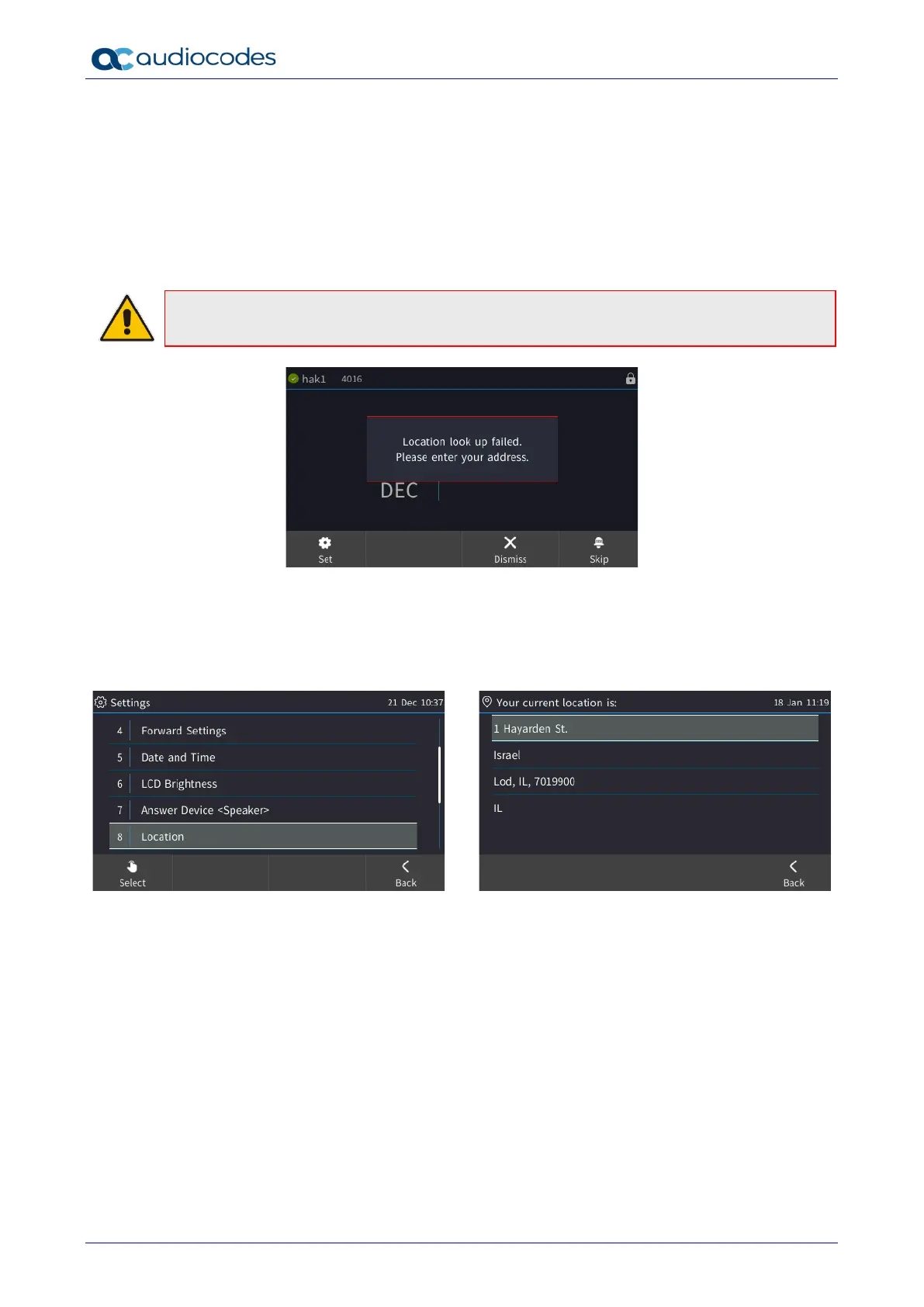 Note: If geographical location is not provisioned by the server, you're notified as shown in the