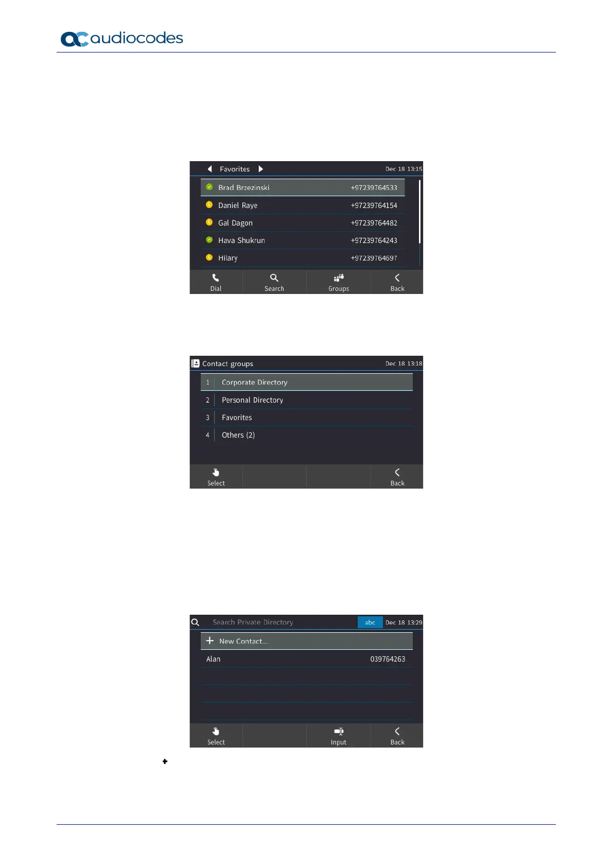 In the Favorites screen shown above, press the Groups softkey and select the directory of