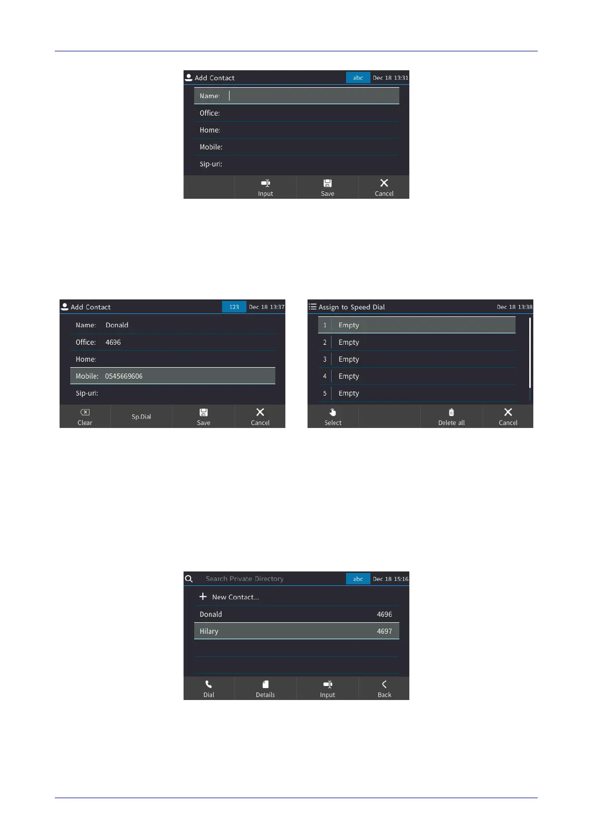 8. Navigate to and select the first 'Empty' speed dial, and then save it; the speed dial key is