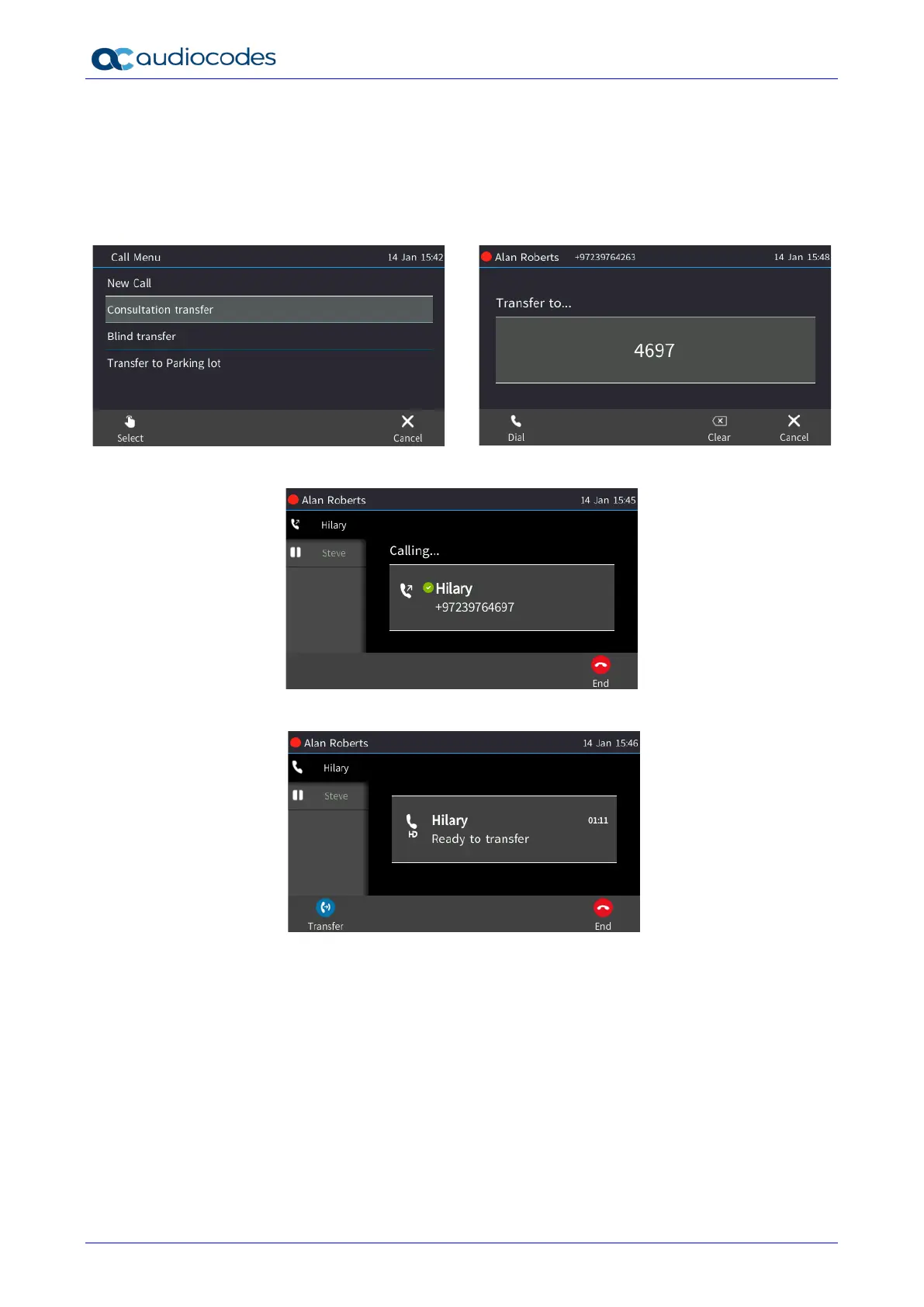4. Consult with Hilary and then press the Transfer softkey - or press the TRANSFER key on