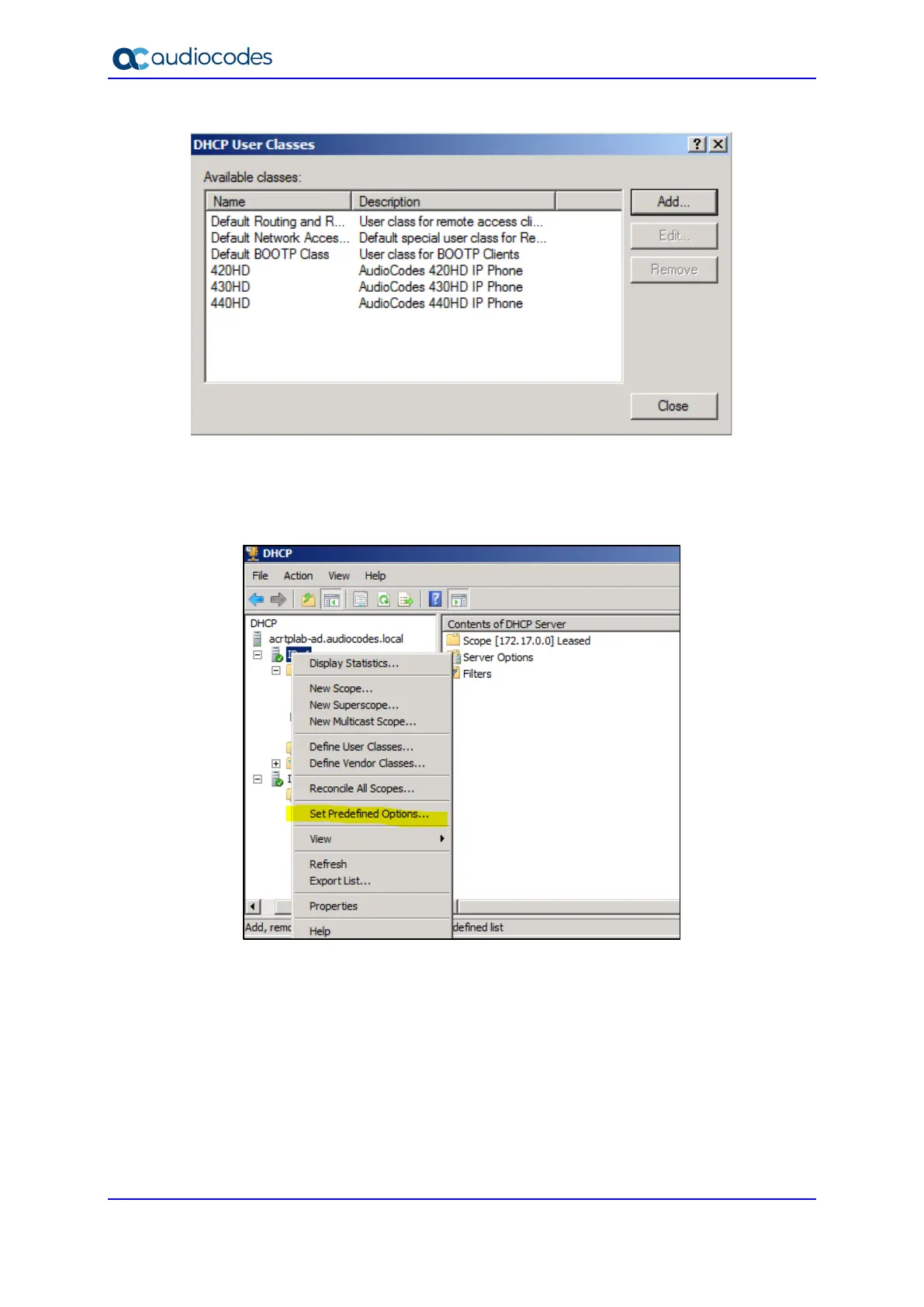 6. Configure Scope Option 160. This is not a standard Scope Option, so it needs to be