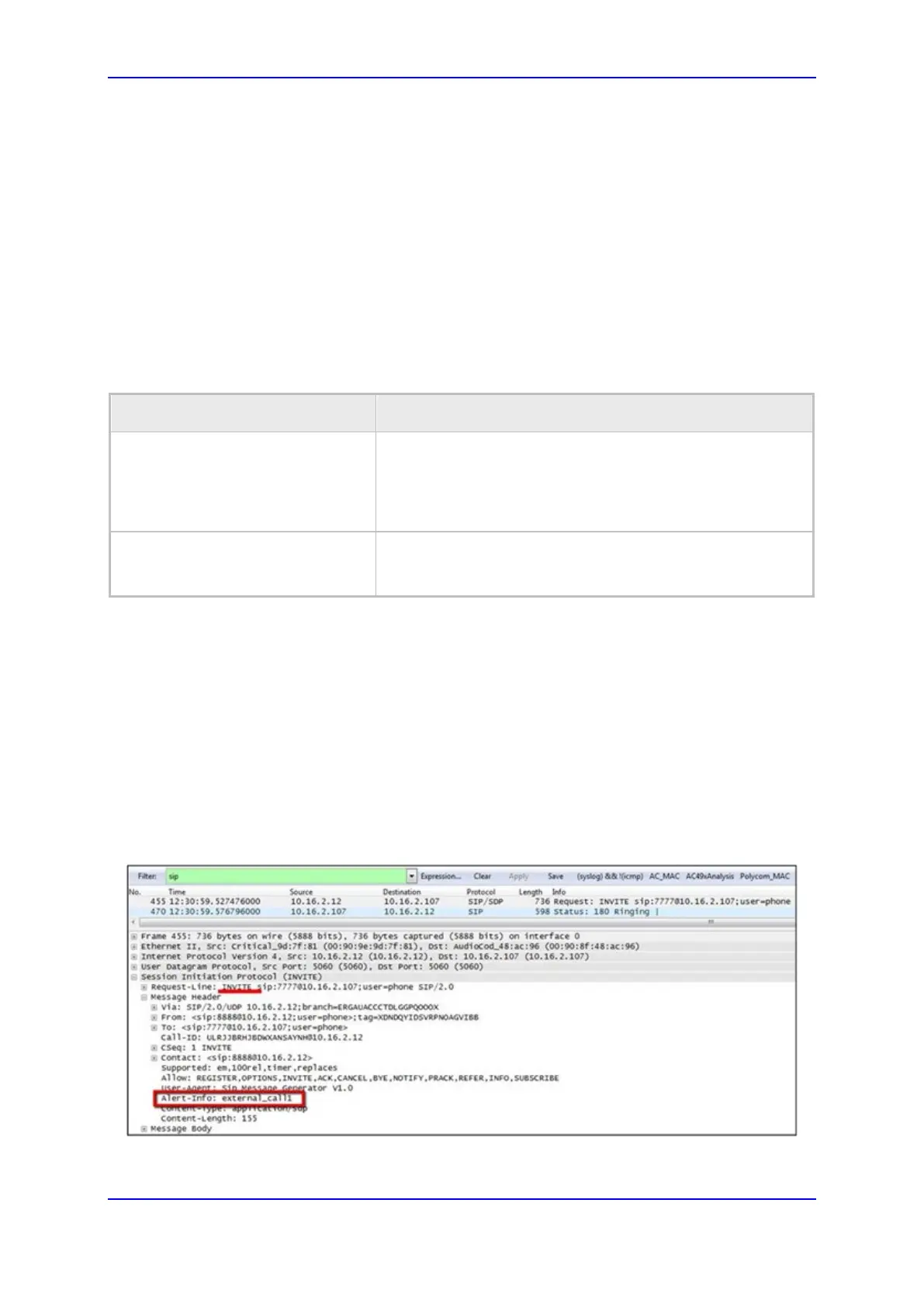 The Alert-Info header must contain external_call1, as shown below. This is the INVITE the
