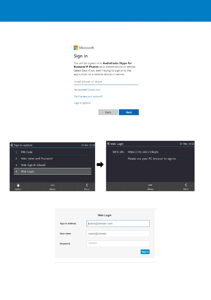 4. Enter the ‘Sign-in address’ (SIP address), (e.g., john.doe@enterprise.com) and ‘User name’, (e.g.,
