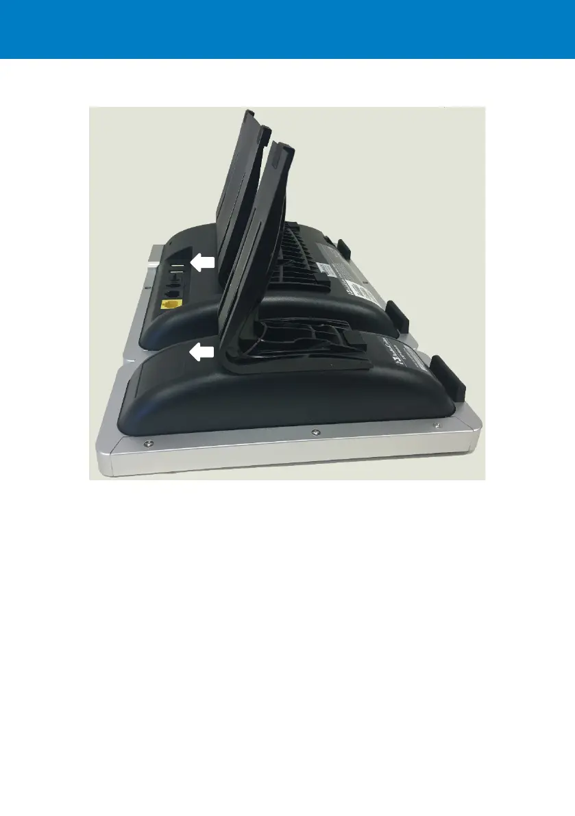 Slots in the stands are slid onto rails on the units. The figure above shows the phone