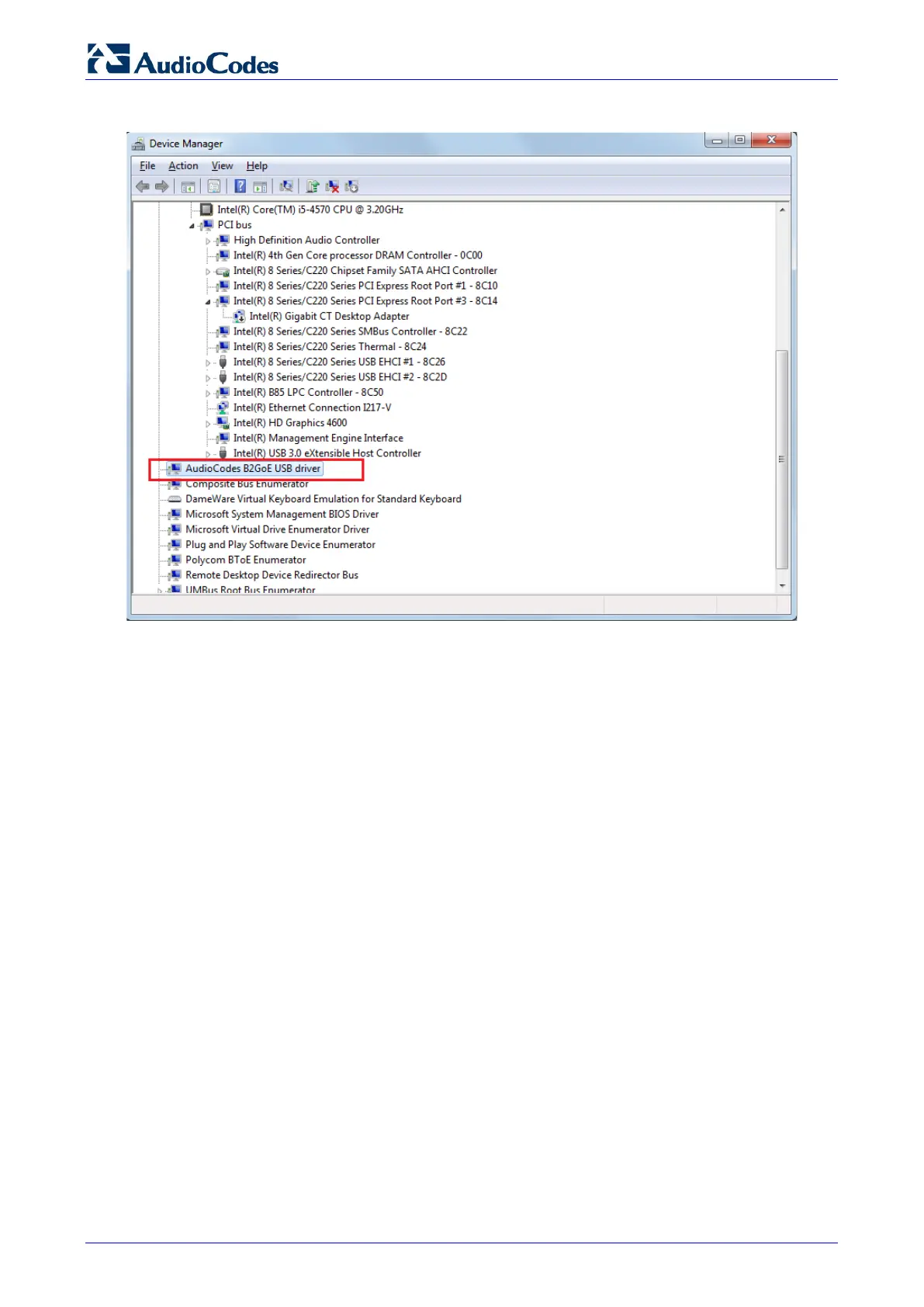 AudioCodes 450HD - Figure 7-13: Device Manager > Audiocodes B2 Goe USB Driver