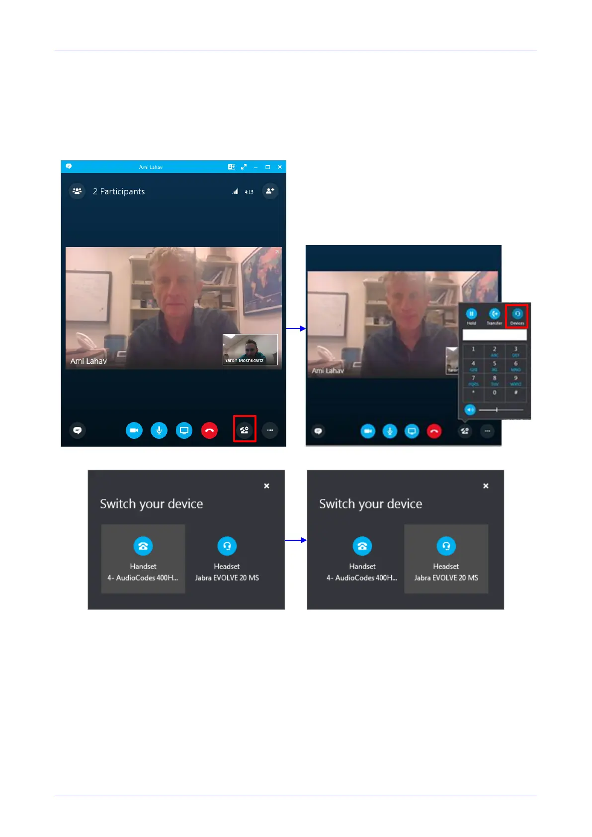 The example below illustrates how Ami Lahav, who's in a video call with Yaron Moshkovitz,