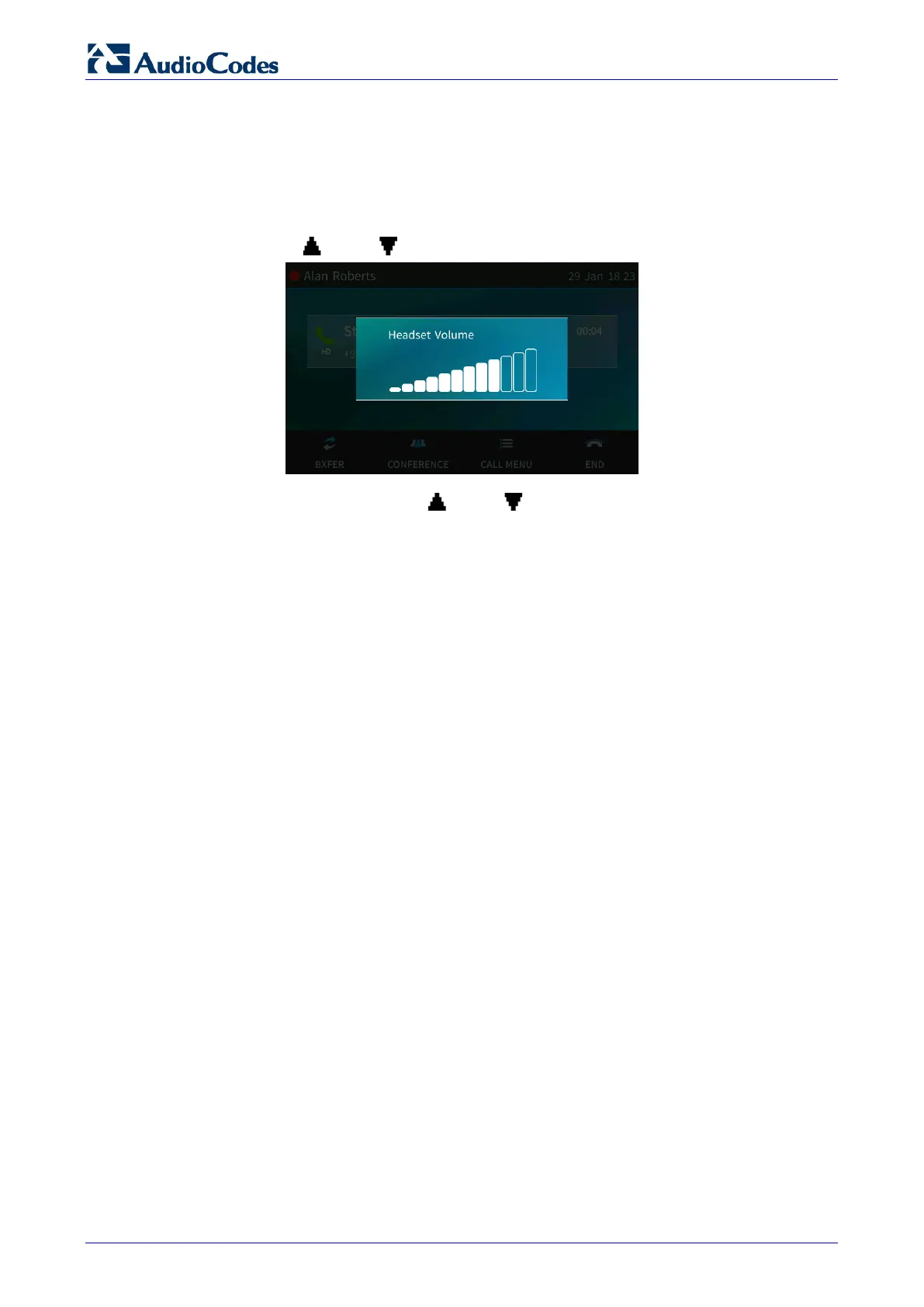 2. Press the VOL or VOL key; the Headset Volume bar is displayed on the screen.