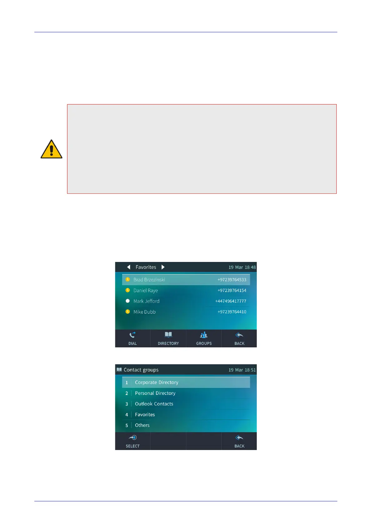 • The Personal Directory and Corporate Directory display the presence status of contacts if