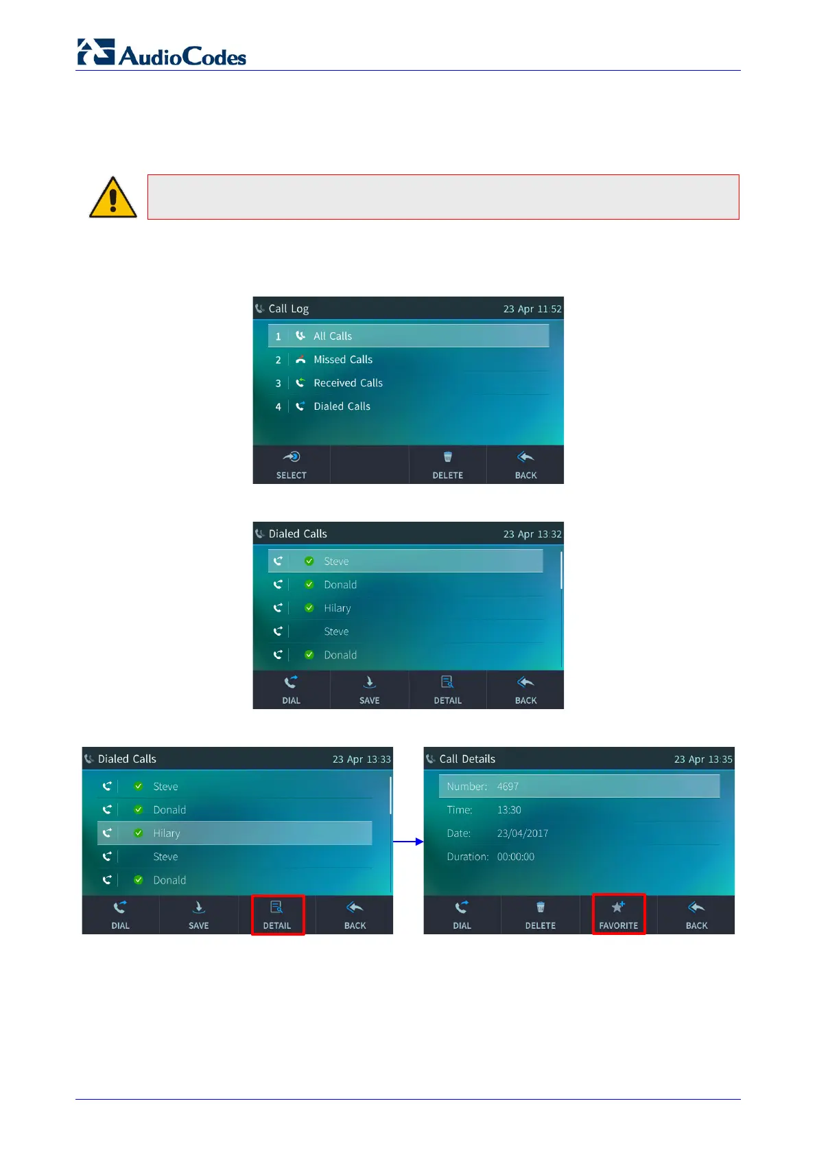 4. In the Call Details screen, touch the Favorite softkey; the person is added to your Favorites.