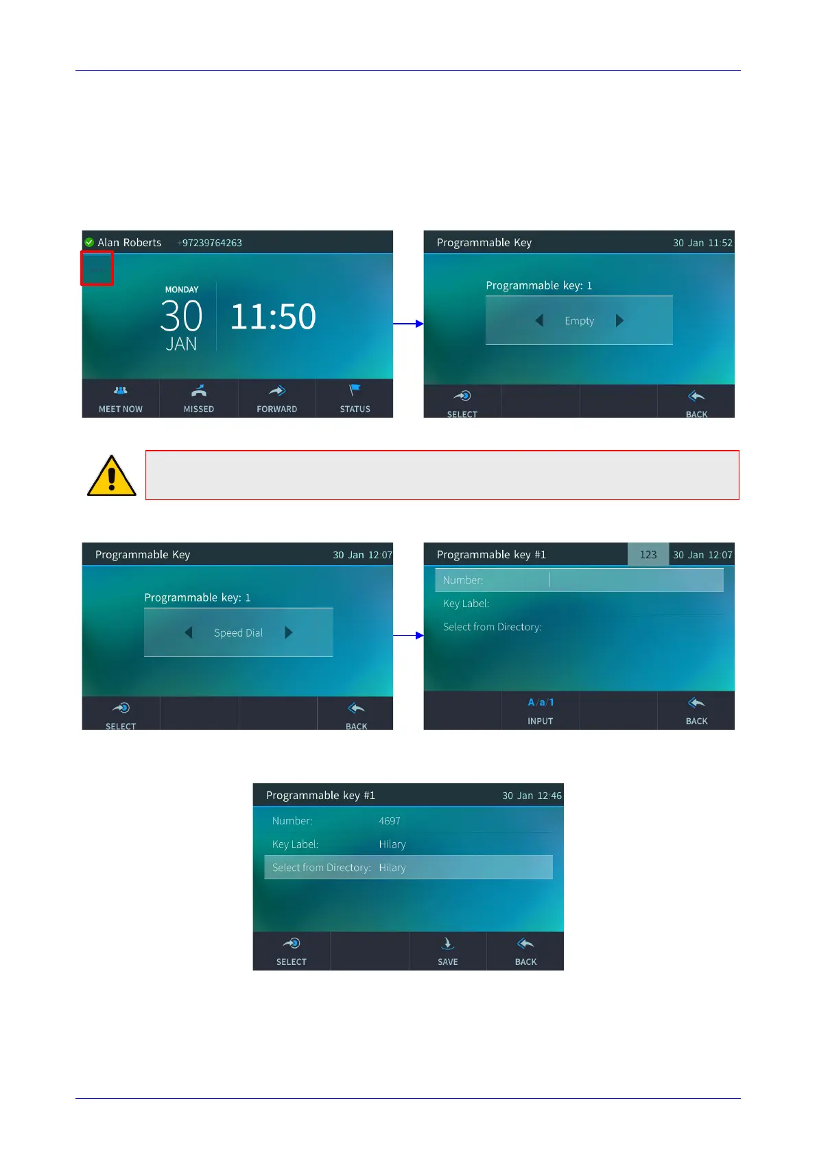 Eight Function Keys can be configured as Speed Dials in the phone's touch screen.