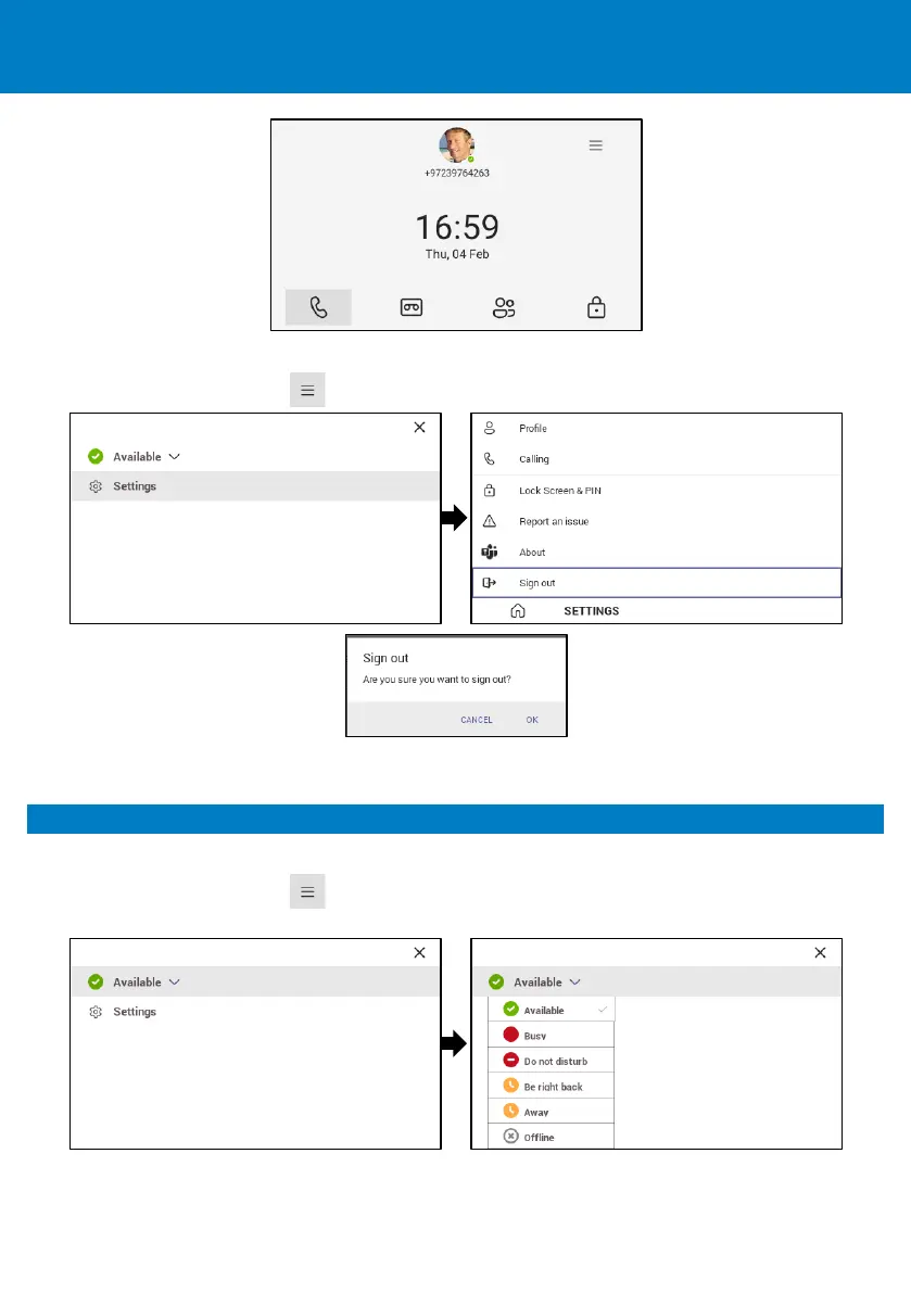 1. Navigate to and select , navigate to and select Settings and then the Sign out option.