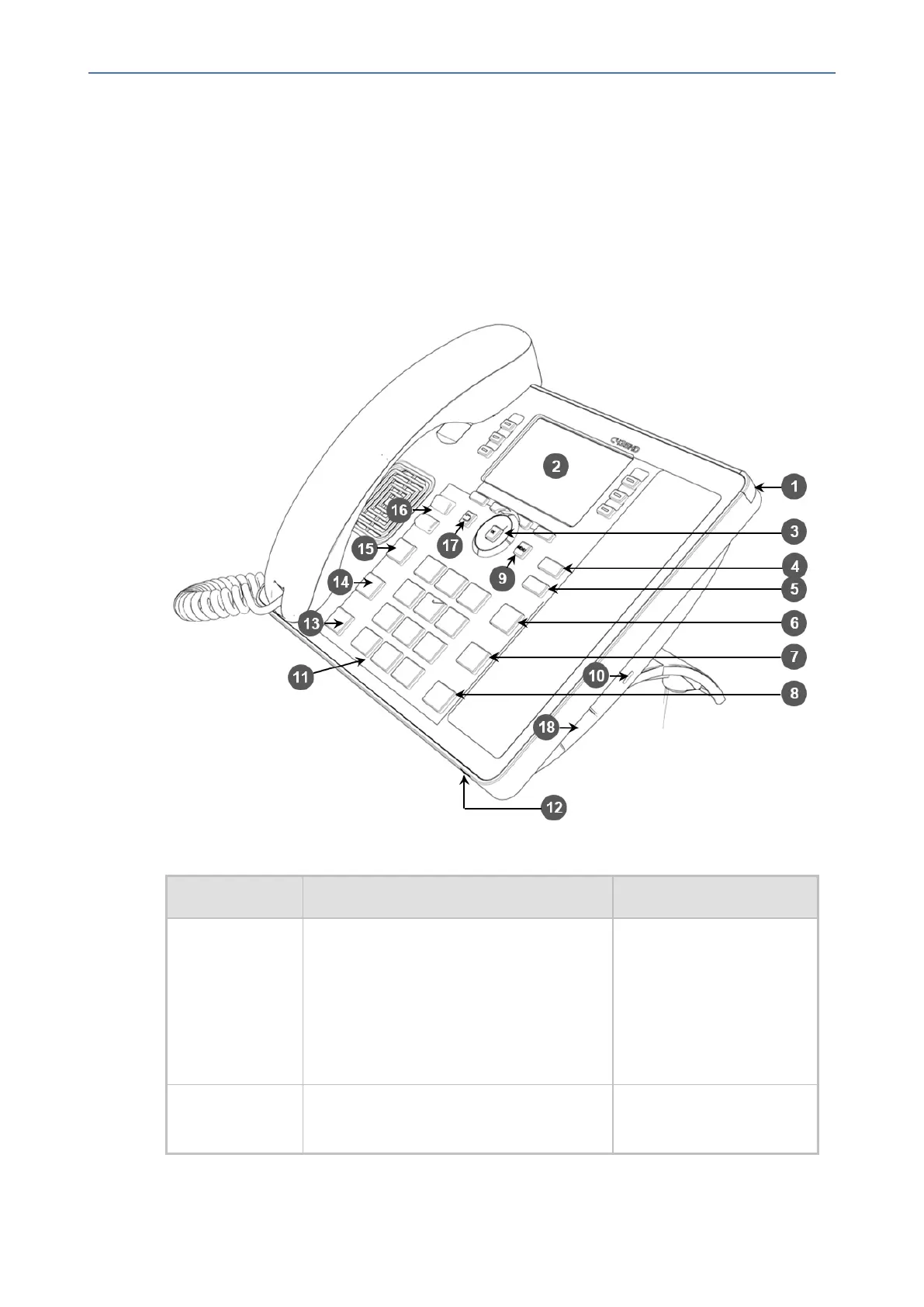 Thefrontviewofthephoneisshowninthefigureanddescribedinthetable.