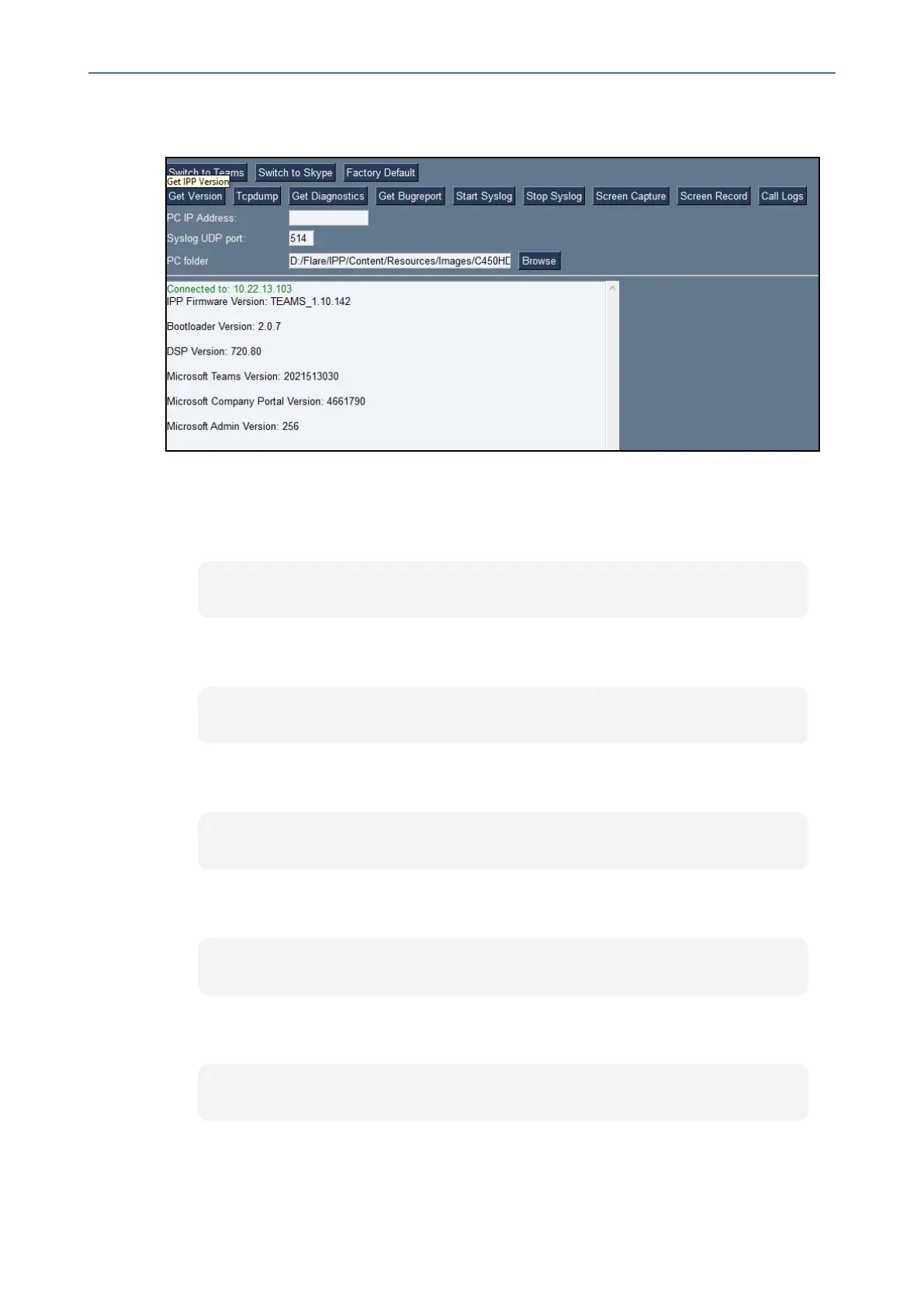 ● TogettheMicrosoft Teams versionusingSSHprotocol,intheutility's'Command'