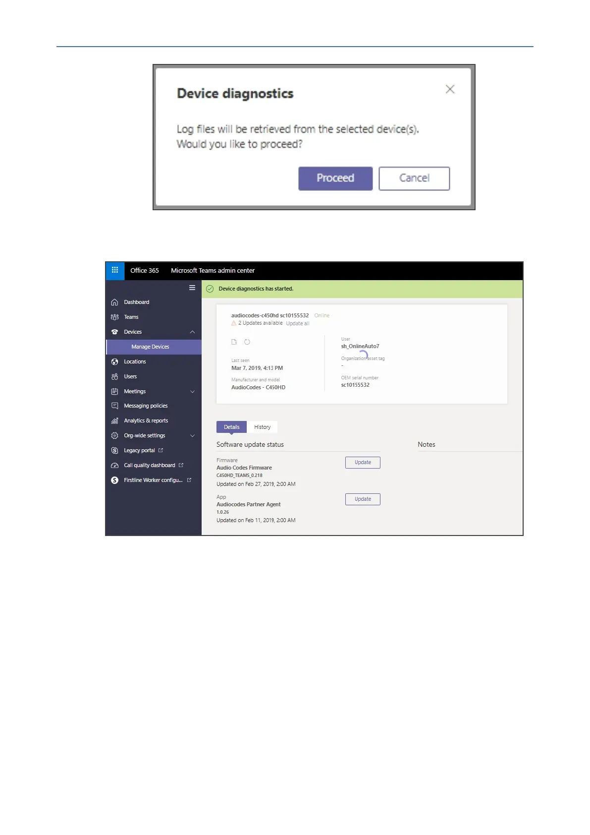 Figure 7-2: Microsoft Teams Admin Center Logs Upload to Server