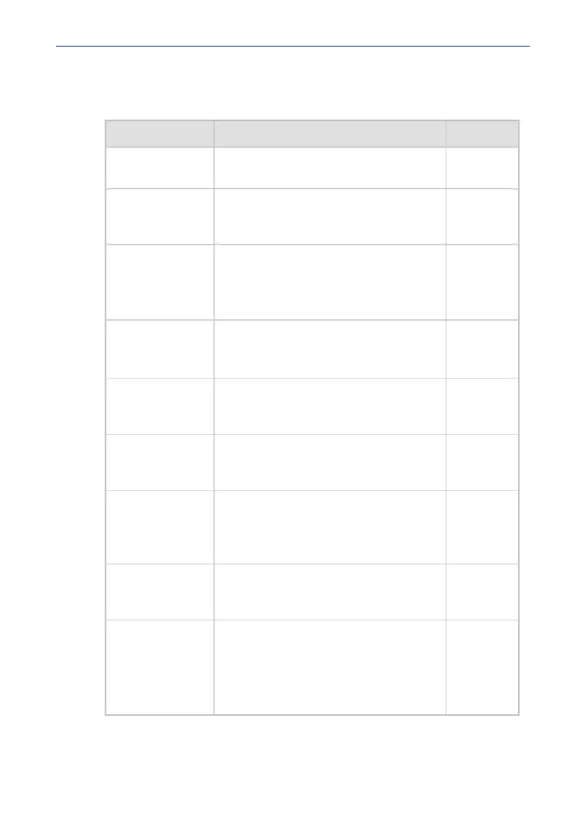 Parameter Description Values