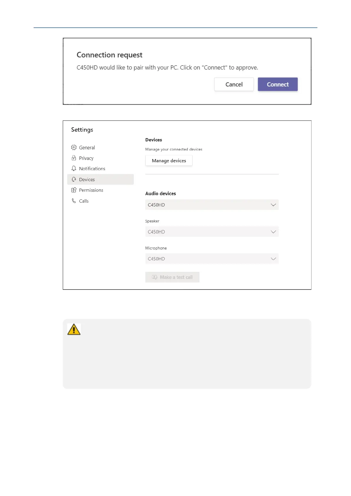 Onceconnected,thephonewillbepresentedasadefaultTeamsPCClientAudiodevice: