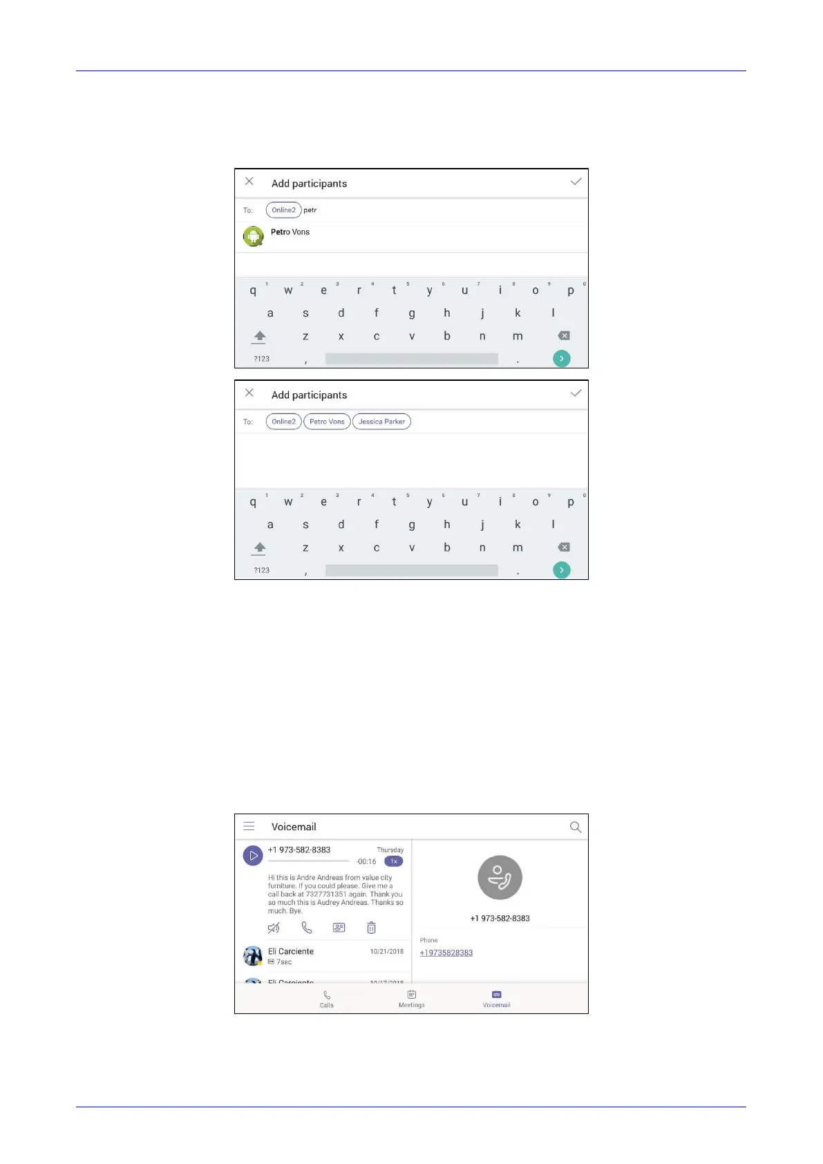 participant to add. If you're searching for Alex (for example), touch the letter A on the soft