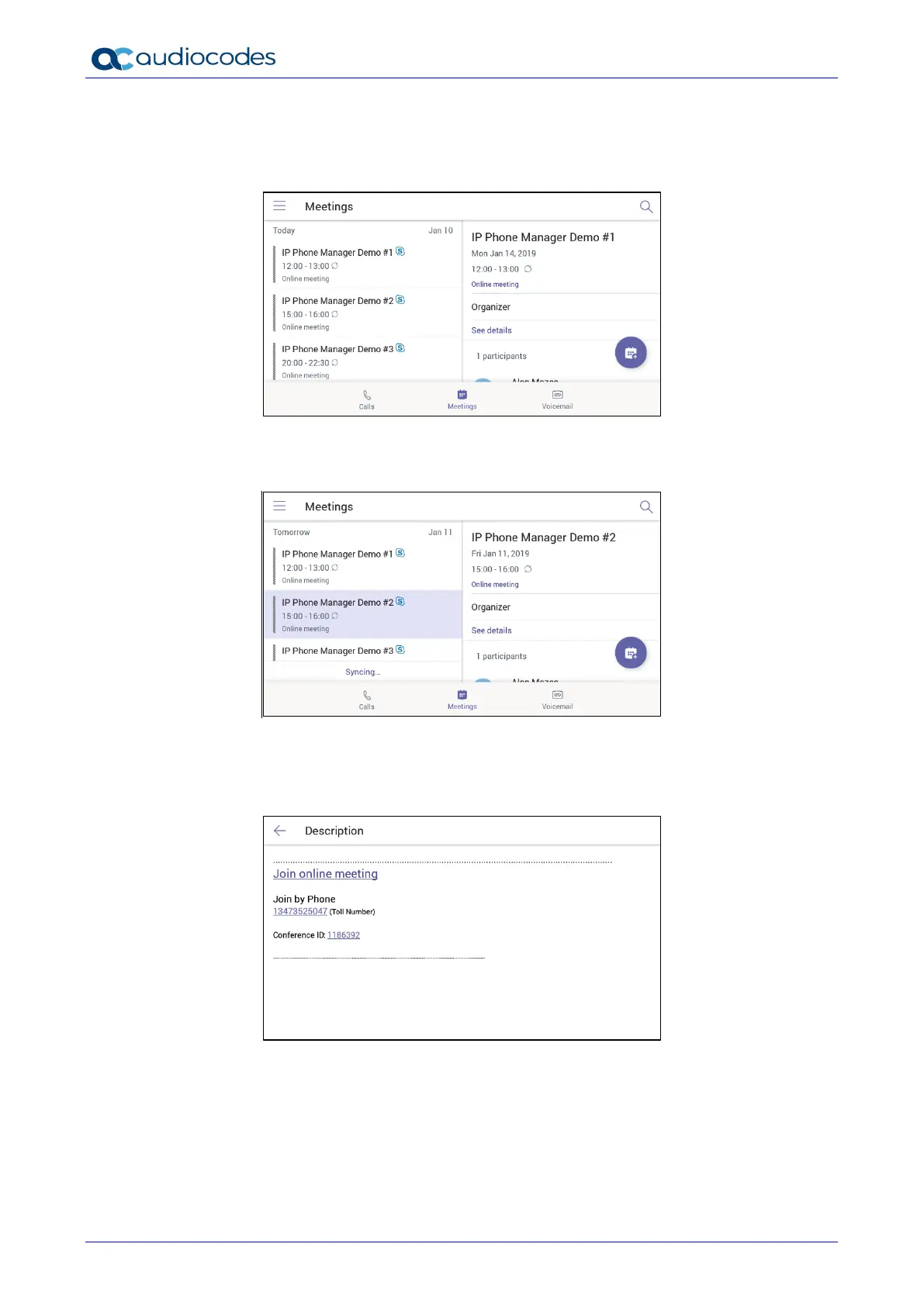 Meetings scheduled for today and for the next week can be viewed by touching the Meetings tab.