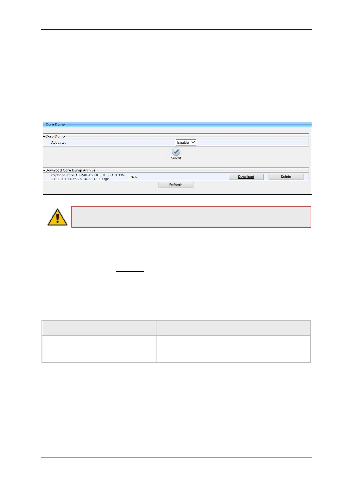 Figure 10-1: Web Interface – Core Dump