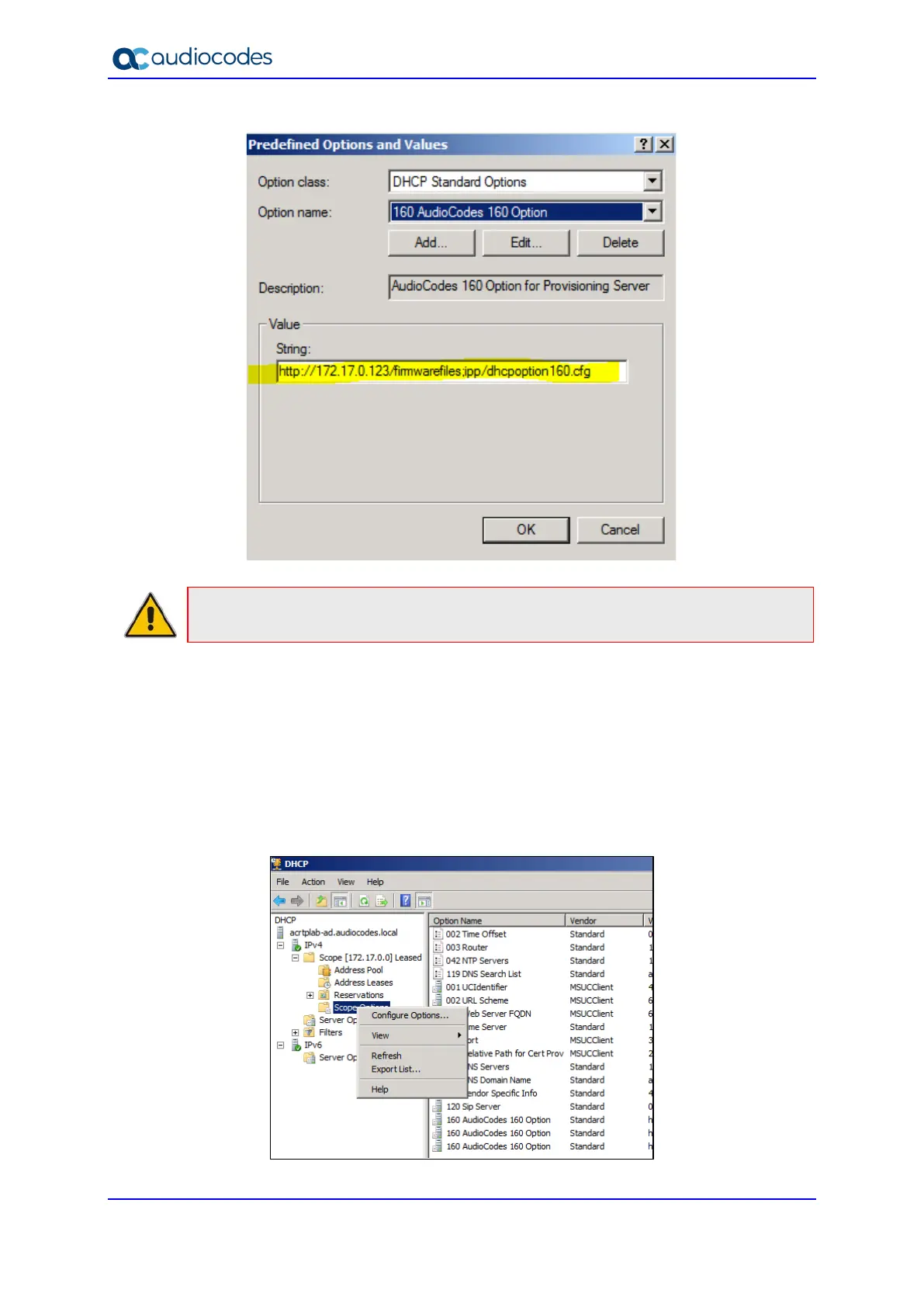Note: Make sure you defined in the enterprise's DHCP server http://<OVOC server IP