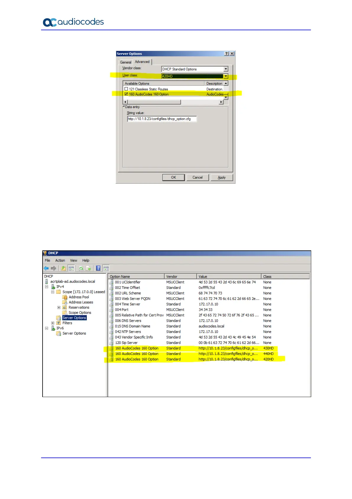 You've successfully created Scope Options that will only allow AudioCodes phones to