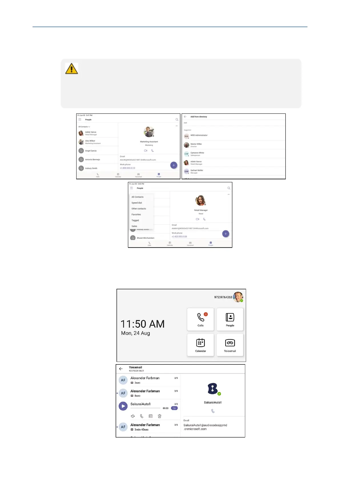 the phone for contacts and easily call the people they may email or meet with, using