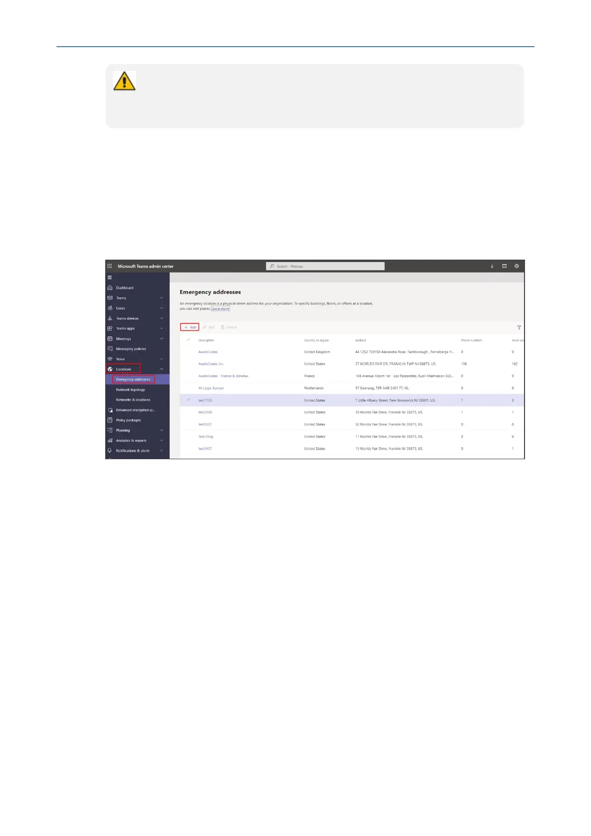 1. IntheTAC,gotoLocationsandinthe'Emergencyaddresses'page,setanewlocationby