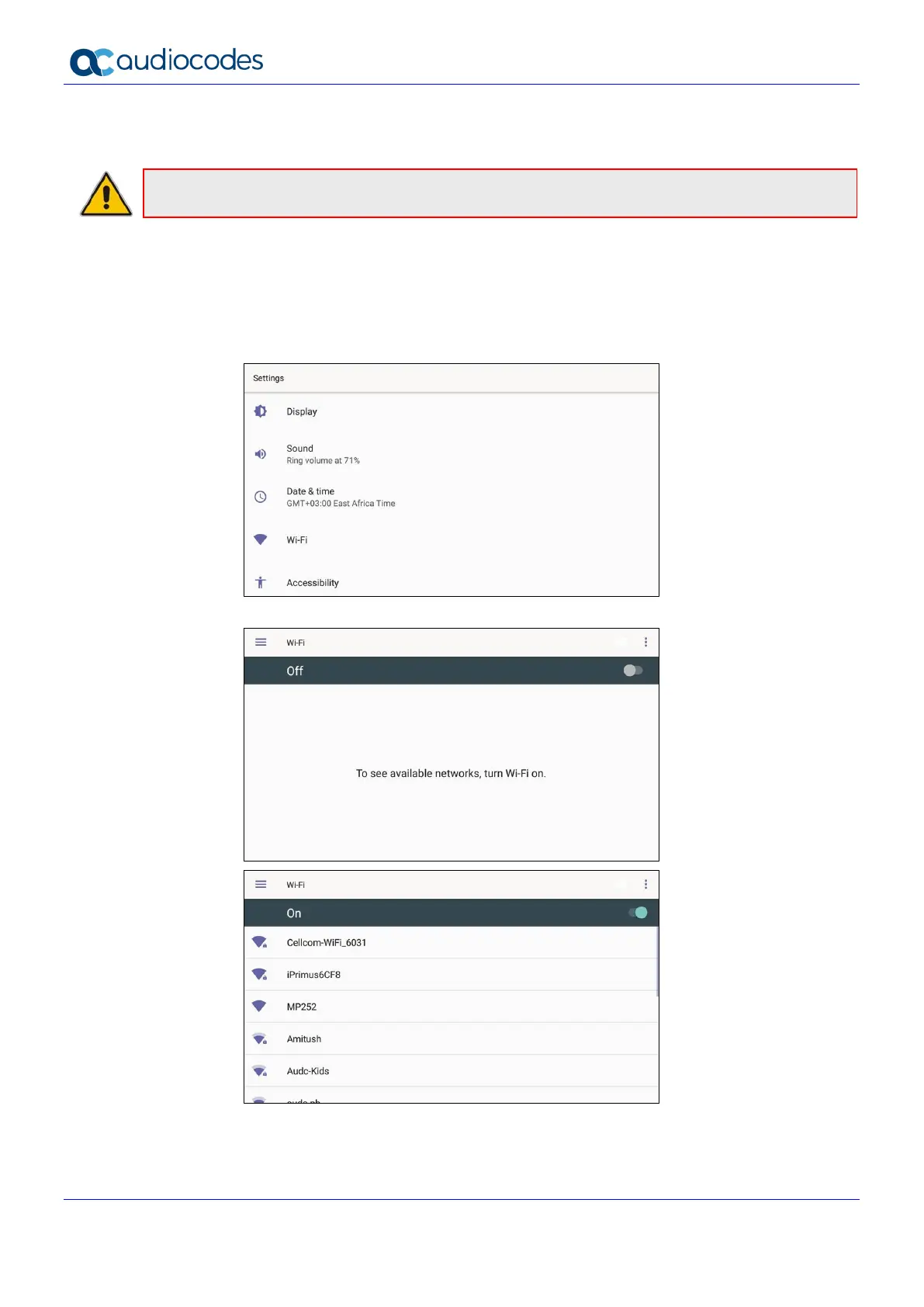 2. Switch Wi-Fi to On to view the list of possible SSIDs:
