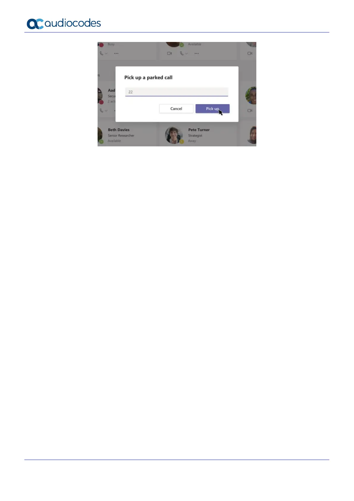 the ‘Pick up’ button to pick up the call.