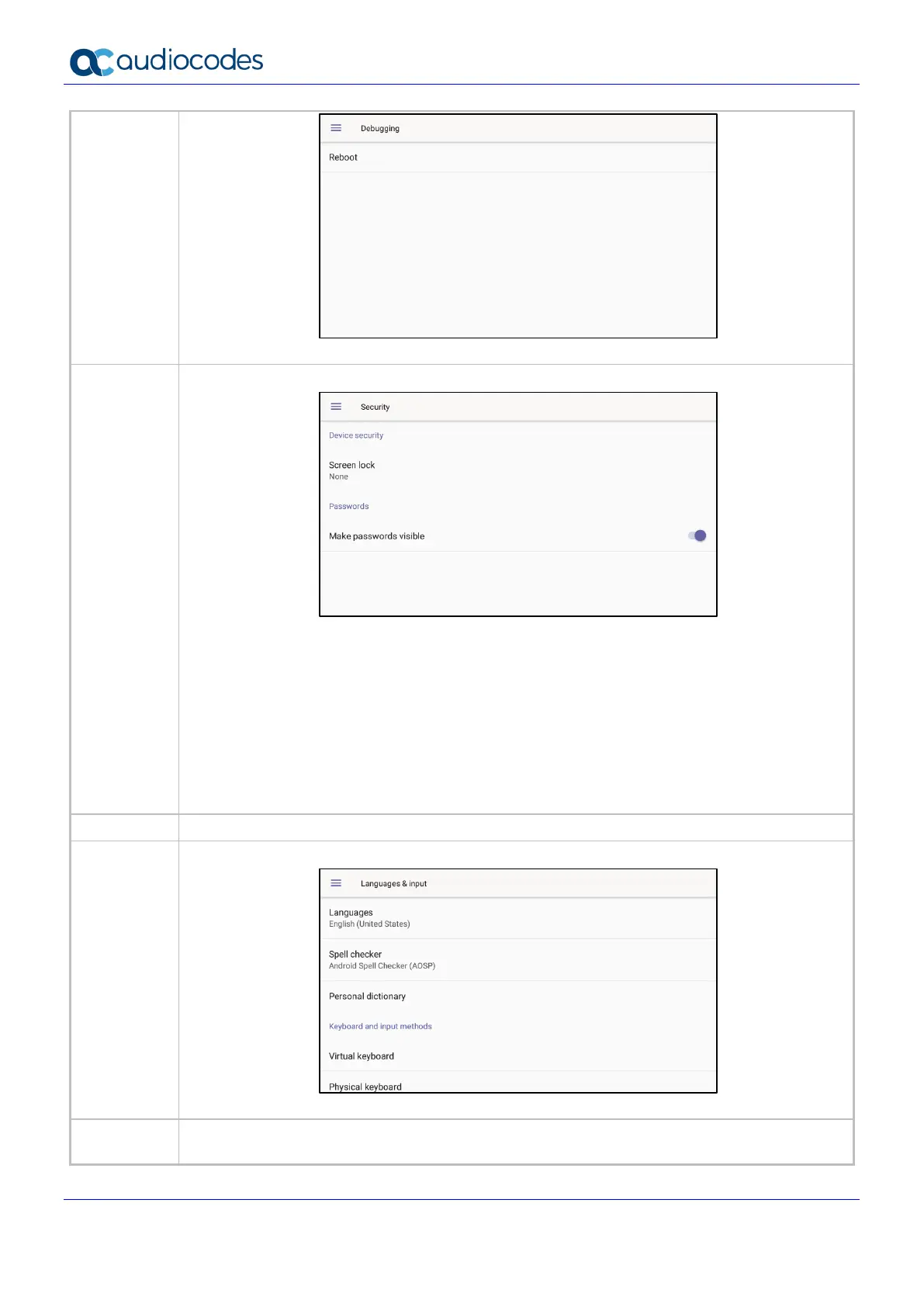 Touch screen Allows users to disable the phone’s touch screen.