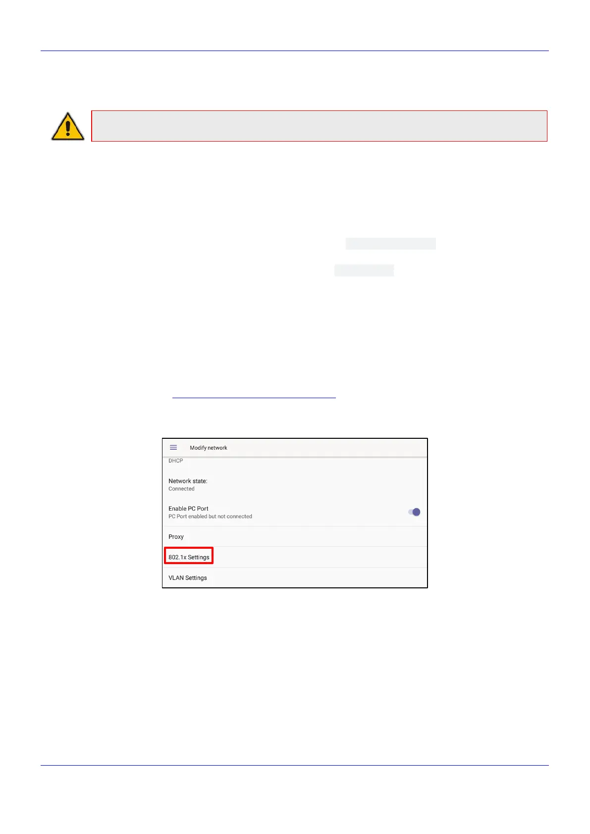 802.1x Settings screen:
